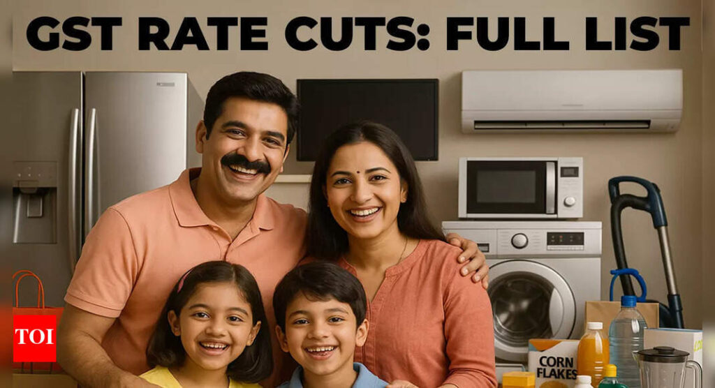 New GST rates 2025 full list: Common man and middle class have a big reason to cheer! Most of the items that people consume in their day-to-day lives – from food to shampoos to appliances – everything is set to become cheaper from September 22 onwards.Finance Minister Nirmala Sitharaman on Wednesday announced major GST rate cuts and slab changes with most items moving to the 5% and 18% tax rate category. Several food items now attract 0% or NIL GST and even life and health insurance will see zero tax.The government has also established comprehensive strategies to track price modifications after reducing GST rates on approximately 400 items.Senior government officials informed TOI that indirect tax authorities are gathering present prices of goods and services to compare them with rates once the new GST structure becomes effective.So what becomes cheaper for you? And wait, some items have gone into the 40% tax bracket as well – so brace to pay higher for what the government classifies as luxury and sin goods.