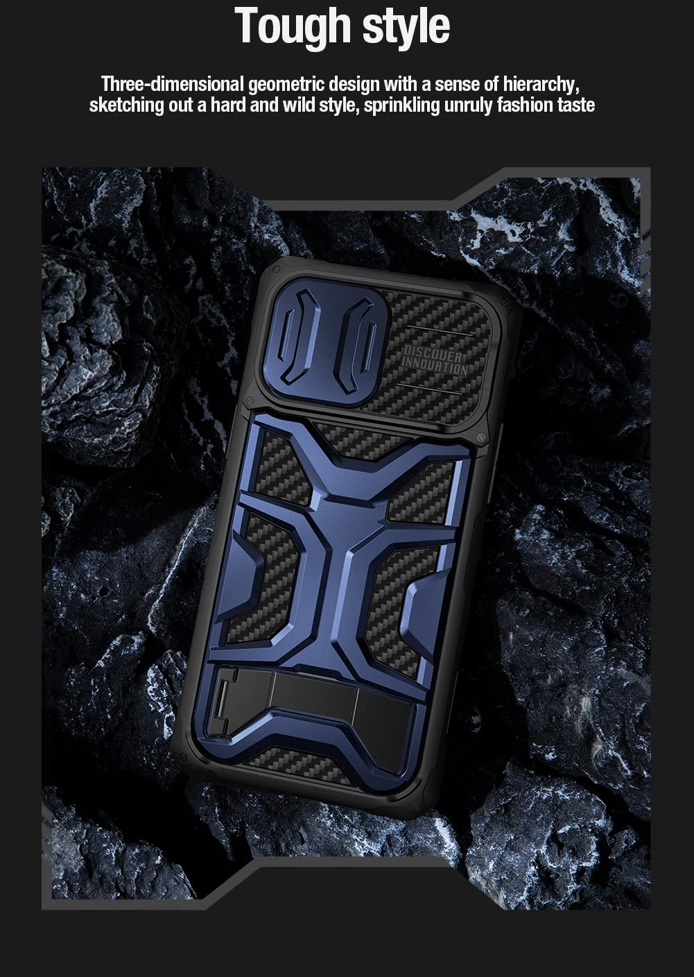 Nillkin Adventurer Pro Case Adventurer Pro case is specially designed for outdoor sports fans, which provide full protection of mobile phones even if in bad weather. It’s made of dual materials, TPU and PC, a combination of softness and hardness. Patent sliding cover design not only prevents camera from scratching, but also protects your privacy. Add anti-fall airbags on four corners. Hidden folding phone holder free your hands anytime, anywhere. Bumpy appearance design creates an extraordinary feel, and enhances friction to prevent slipping. Honeycomb twill back plate, efficient heat dissipation; lanyard holes for double the protection.