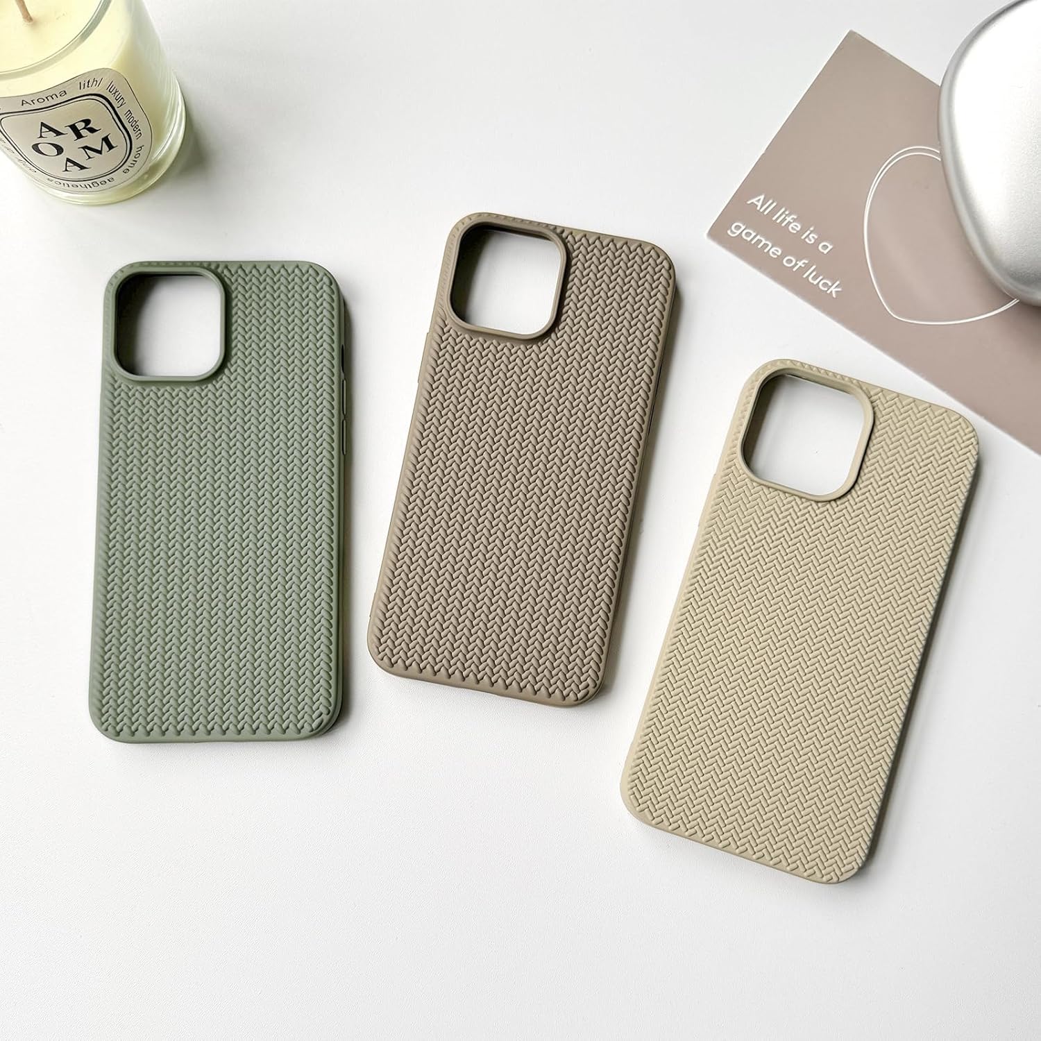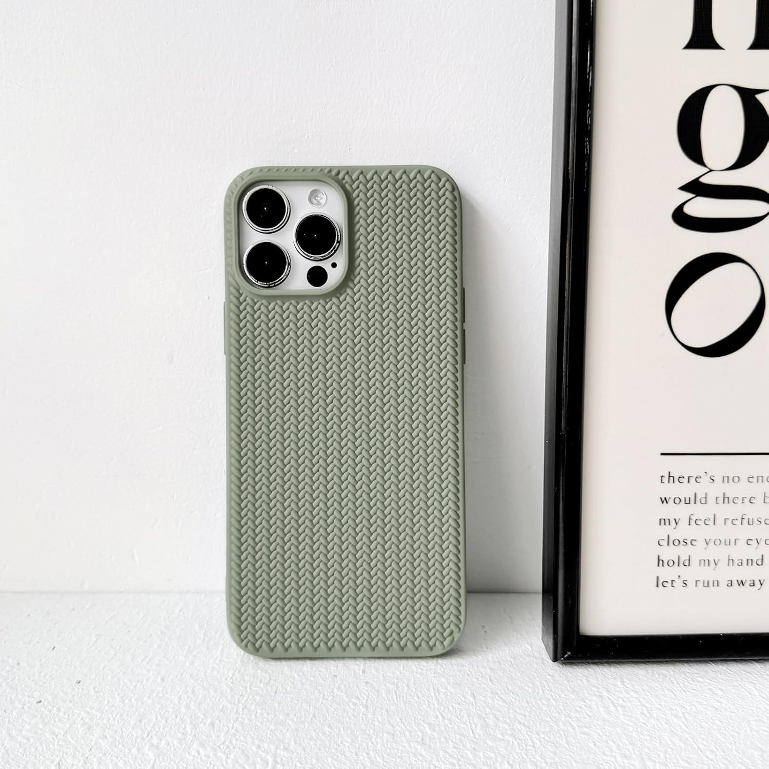NITITOP Compatible for iPhone 15 Pro Max Case Cute for Women Girls Woven Pattern Matte Braid Design Solid Color Soft Silicone ShockPro Maxof Cover – Green
