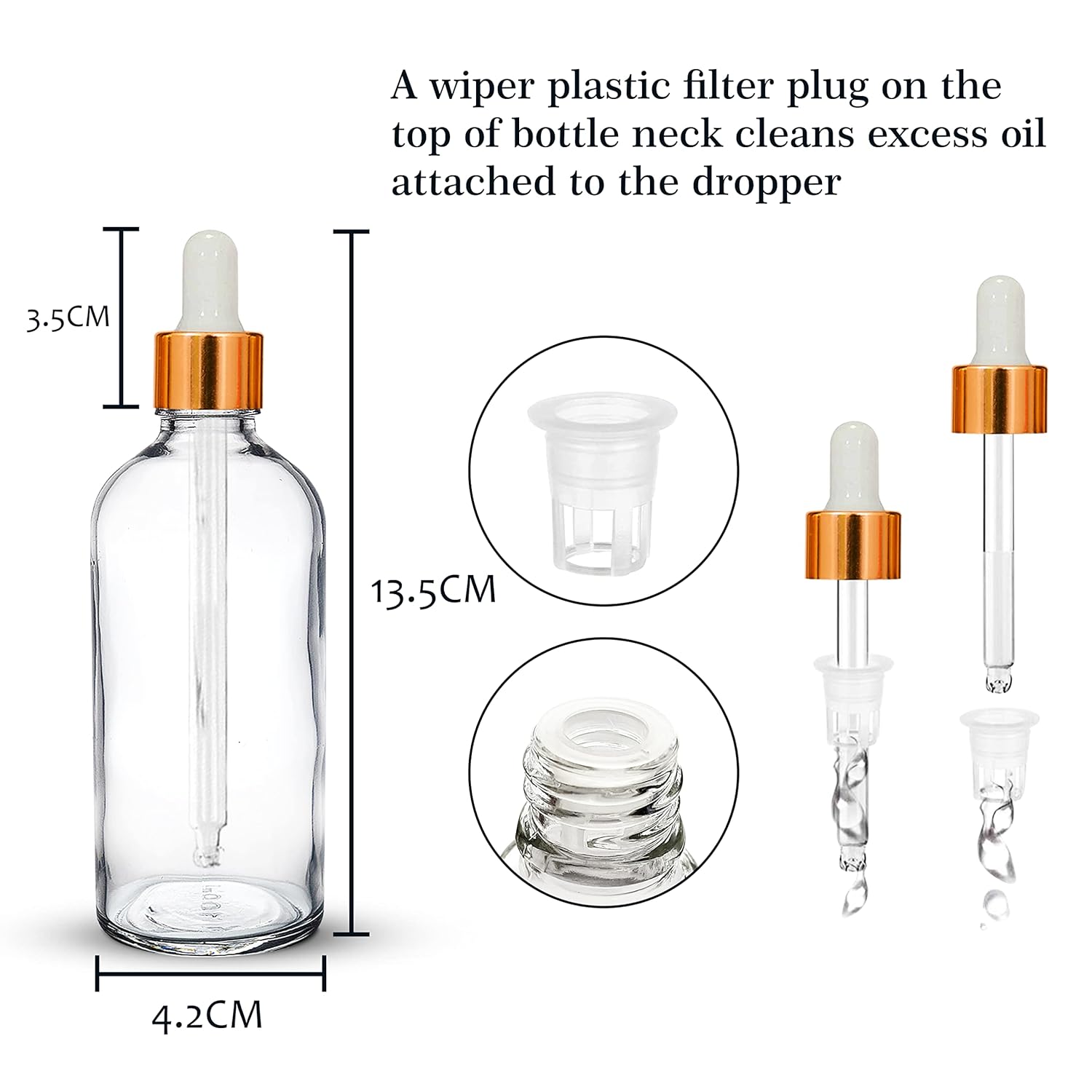 Usage: These Glass bottles are perfect for storing oils,Face oils,Massage oils,oil blends, home Made serums,DIY perfumes, oil blends, oils,cosmetics,food coloring, food essence,liquid sweetners and makeup products