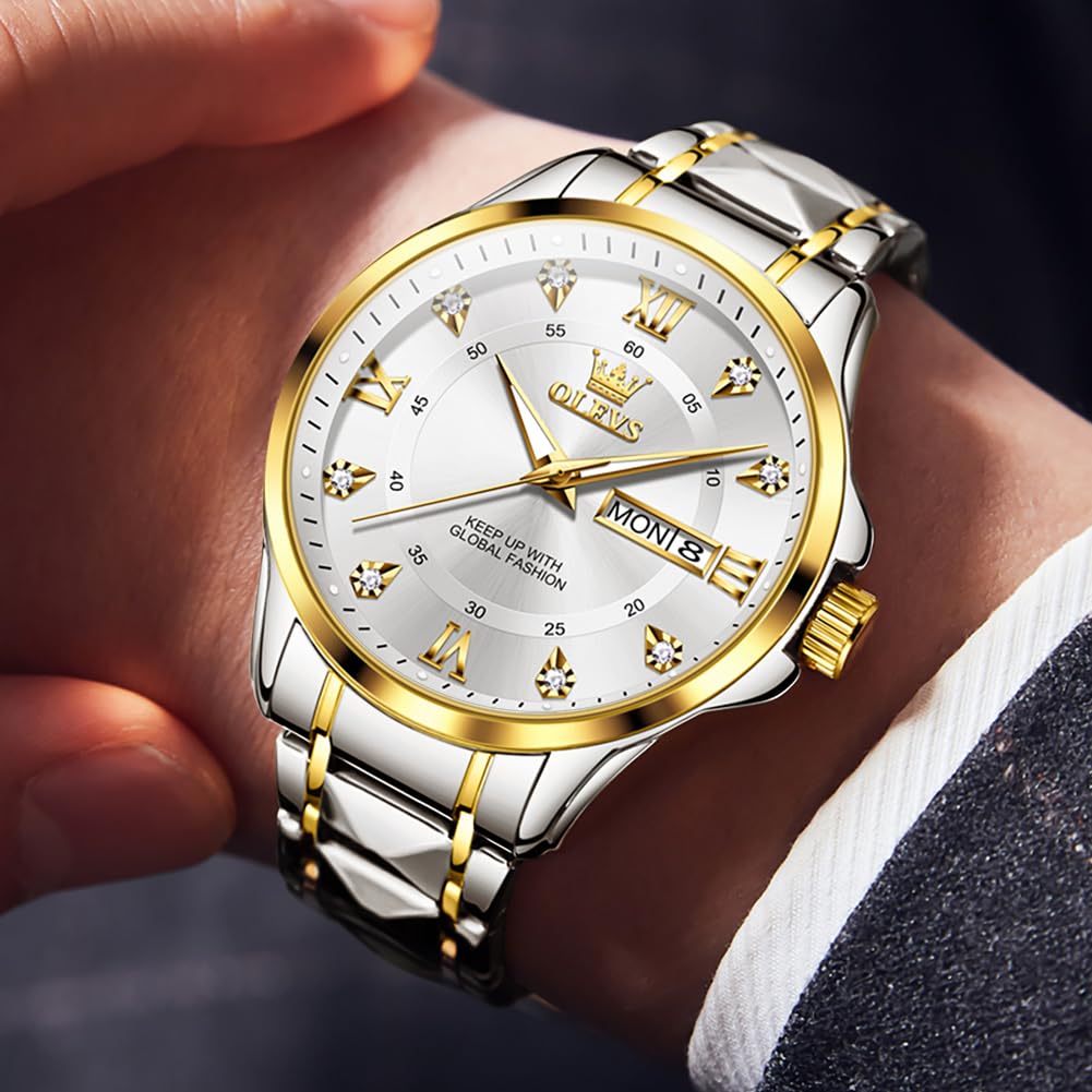 OLEVS Watches for Men Fashion Diamond Analog Quartz Men’s Easy Reader Watch Stainsteel Steel Date Waterproof Luminous Business Watch