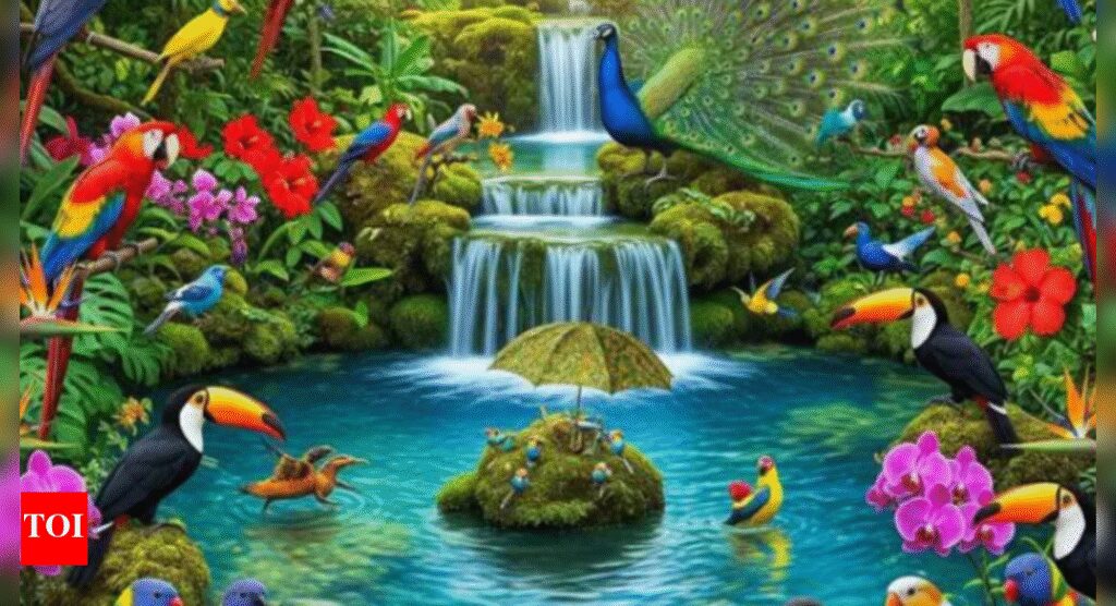 If optical illusions are something that interests you, this mesmerizing and vibrant jungle photo is the perfect puzzle. The image looks like a beautiful tropical paradise with waterfalls, parrots and toucans in saturated colors, vibrant flowers, and a serene pond in the middle. However, there is more to the photo than meets the eye. It has an optical illusion hidden in it that is designed to demonstrate how sharp the brain is in noticing tiny details.Somewhere in this vibrant situation, there is a hidden object, an umbrella that blends so well it appears to disappear. The only thing is, can it be found? If the hidden thing is found within less than 10 seconds, it is a sign of sharp observation and could win the “Genius of the day” award. Let’ see if you can find the concealed umbrella or not! Give yourself 10 seconds to make this more interesting.