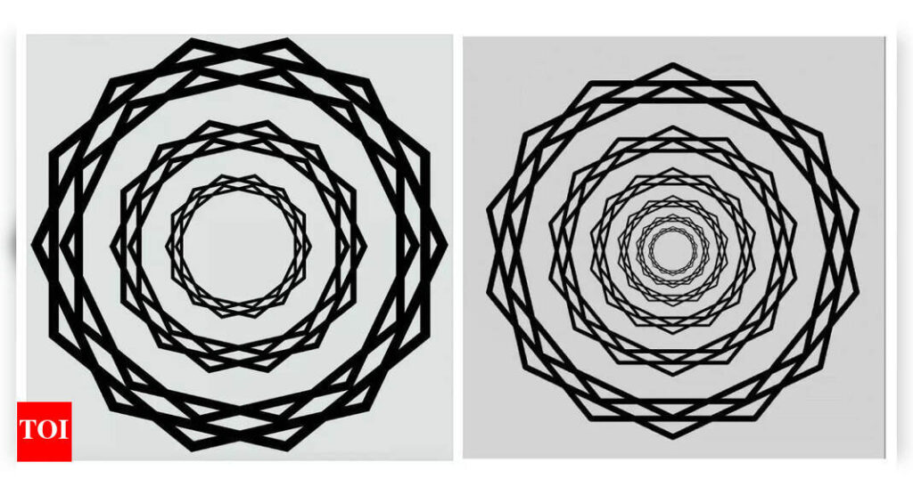 This stimulus is made up of several concentric pairs of scaled star polygons. Most observers perceive fleeting rays, beams, or lines emanating from the center that appear to be brighter than the background.Pic courtesy: Michael Karlovich, Recursia LLC