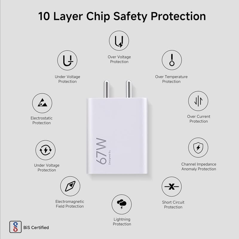 Compact Design with premium hard ABS Plastic body for extra durability and sturdiness ,BIS certified to provide safe and reliable charging.