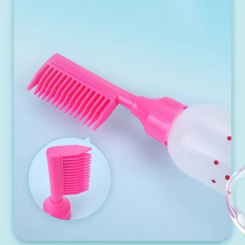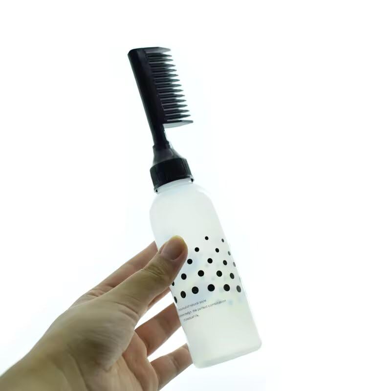 Narrow tip applicator for precise and controlled application comb attachment for even distribution of hair dye or oil leak-proof design to prevent spills.