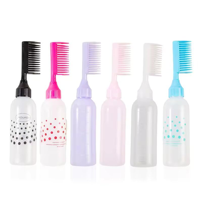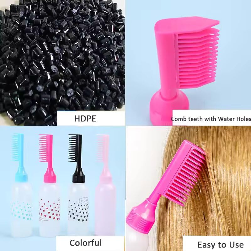 Suitable use in filling hair color, applying hair oil, hair conditioner, hair shampoo and more. This applicator does have holes at the tip of each brush strand and a hole at the bottom of the base that holds the strands.ABSPlastic material, easy to wash and quick drying. This Applicator Bottle is easy to use You just have to do is mixing the hair color with water or hair oiling into a paste, pour paste into the bottle, screw the lid and squeeze the bottle directly along hair roots to tails. The bottle is marked with capacity, Convenient use for Salon and Home. Simply fill the hair applicator bottle with your pre-mixed hair color and use a pressing motion to let the dye flow through the comb head, it doesn’t stick to your hands when you use the hair color bottle applicator.