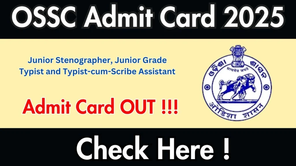 OSSC Junior Stenographer, Junior Grade Typist and Typist-cum-Scribe Assistant Admit Card 2025 is Out! On 15-09-2025 Odisha Staff Selection Commission has officially released the OSSC Junior Stenographer, Junior Grade Typist and Typist-cum-Scribe Assistant Admit Card 2025. Candidates who have applied for the Junior Stenographer, Junior Grade Typist and Typist-cum-Scribe Assistant Exam can now download their admit card from the official website ossc.gov.in.