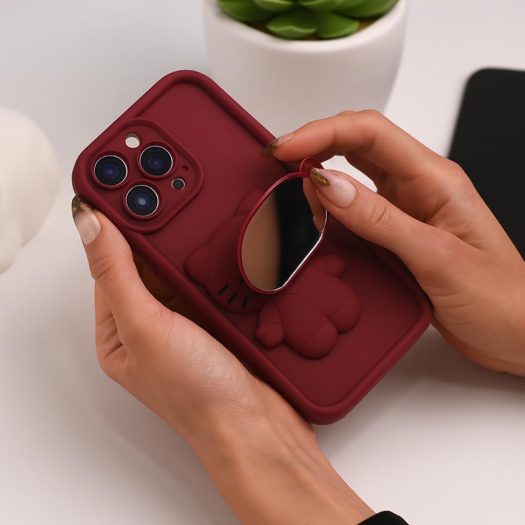 Peeperly Back Cover Case for iPhone 15 Pro Max Scratch Resistant Anti-Slip TPU Shockproof Protective Durable Meow Makeup Mirror Case for Girls & Women(Red)