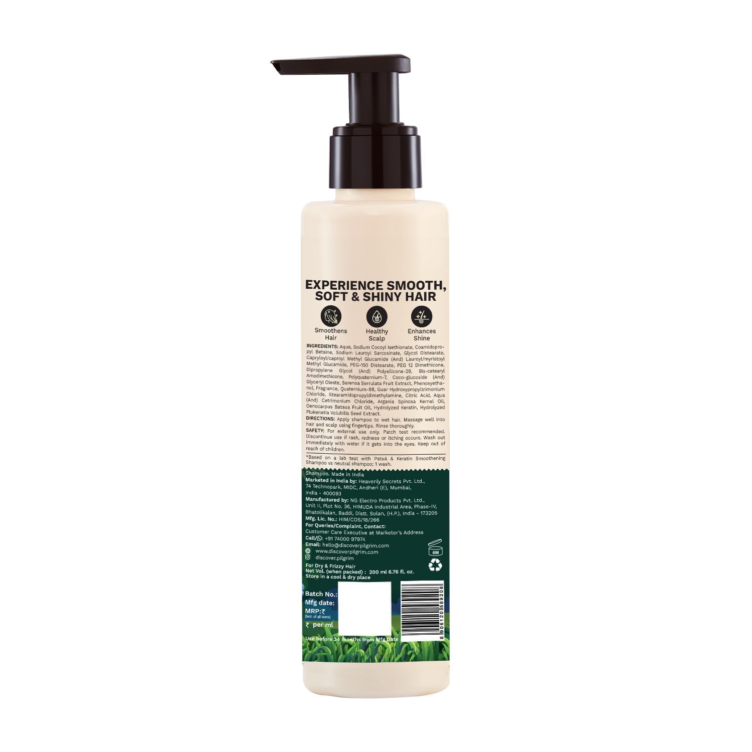 Generic Name : Pilgrim Patuá & Keratin Hair SMOOTHENING SHAMPOO for Dry & Frizzy hair 200 ML (Pack of 3) | Sulphate & Paraben free shampoo for Women & Men | Hair Smoothening & healthy scalp