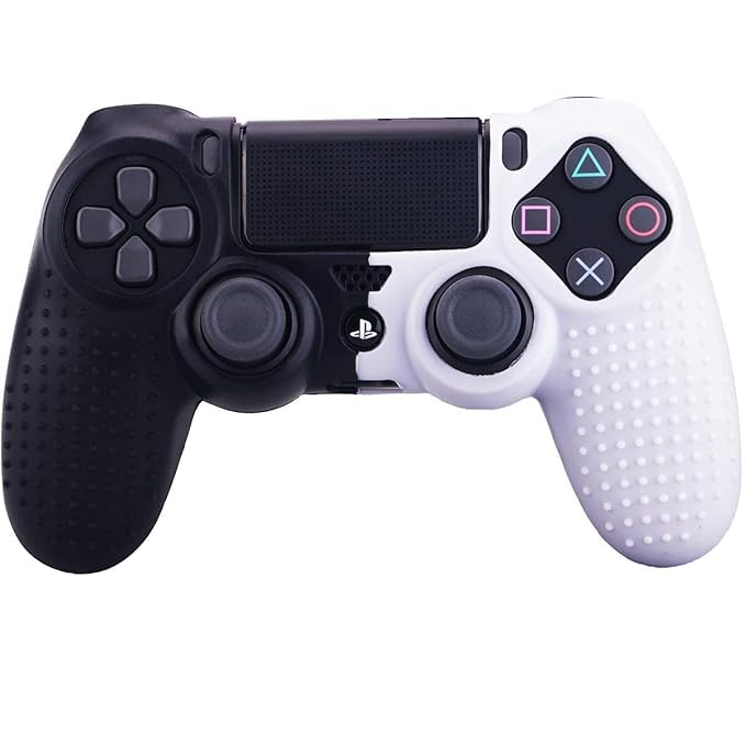 Porro Fino Special Design Studded Dots Silicone Case Cover Skin Protective for PS4 Wireless Controller 2 Thumb Grips (Black & White)