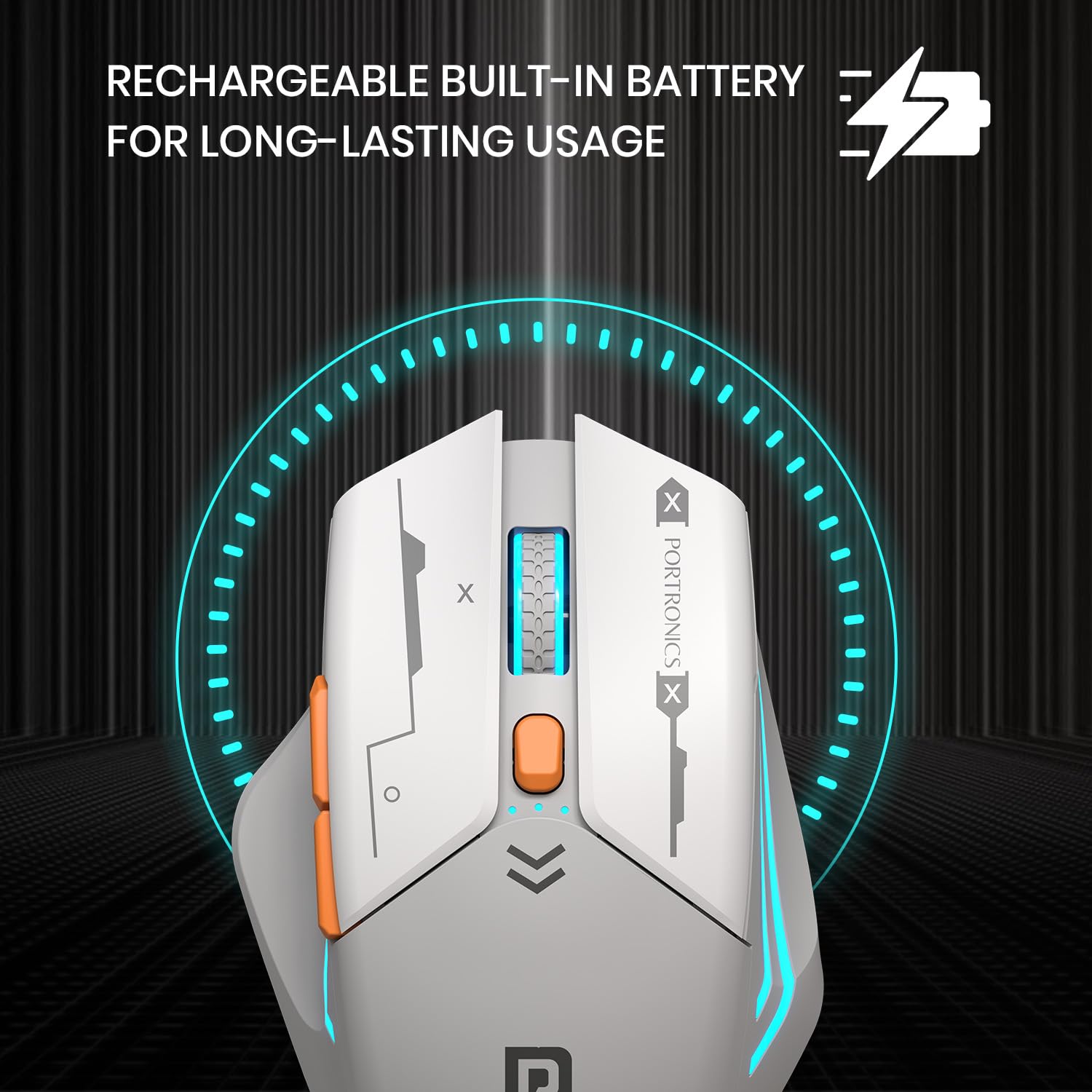 The Portronics Vader Max Wireless Rechargeable Mouse is a high-performance dual-mode wireless mouse featuring Bluetooth 5.3 and 2.4 GHz connectivity for seamless usage across devices. With an adjustable DPI of up to 2400, it provides precision control for gaming, designing, and office tasks. Its 6-button layout allows quick navigation, while the ergonomic thumb support ensures a comfortable grip for extended use. Powered by a rechargeable battery, it eliminates the need for frequent replacements, making it a perfect companion for laptops, desktops, and gaming consoles. Designed for efficiency, style, and versatility, the Vader Max is your go-to choice for a superior computing experience.