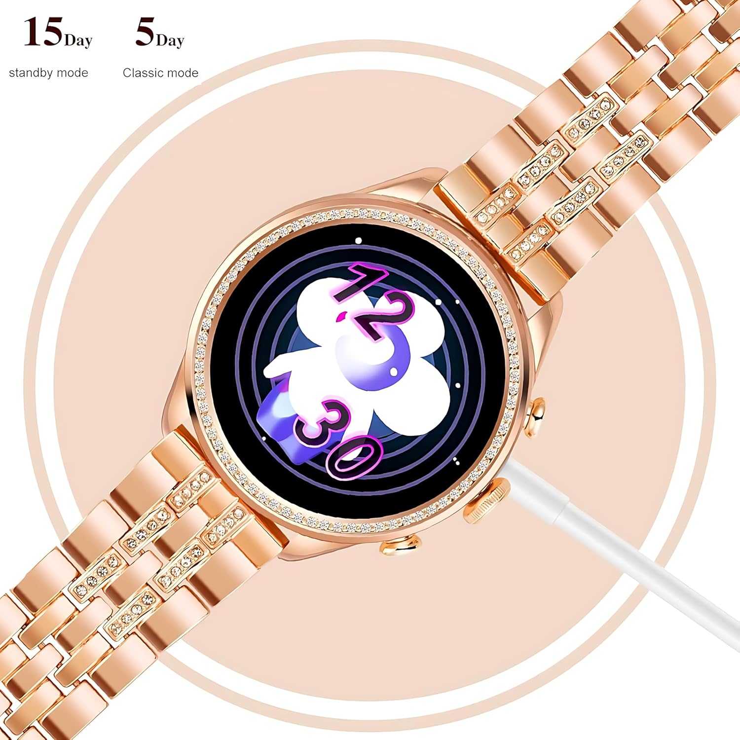 ✨ Luxurious Design: Features a rose gold stainless steel band adorned with sparkling diamonds, adding sophistication and glamour to any occasion.