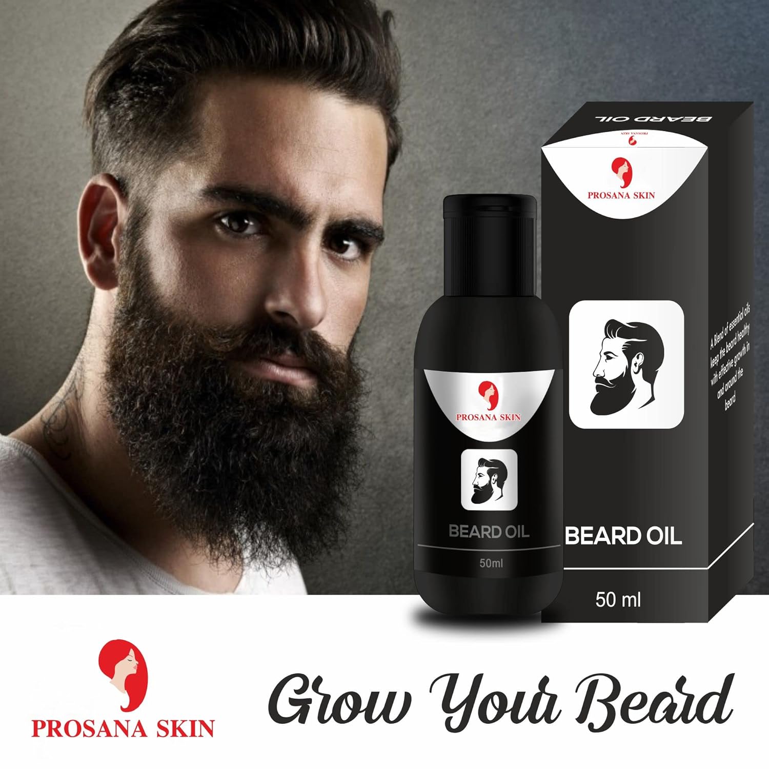 PROSANA SKIN Beard Growth Oil in a 50ML bottle designed to promote fast beard growth