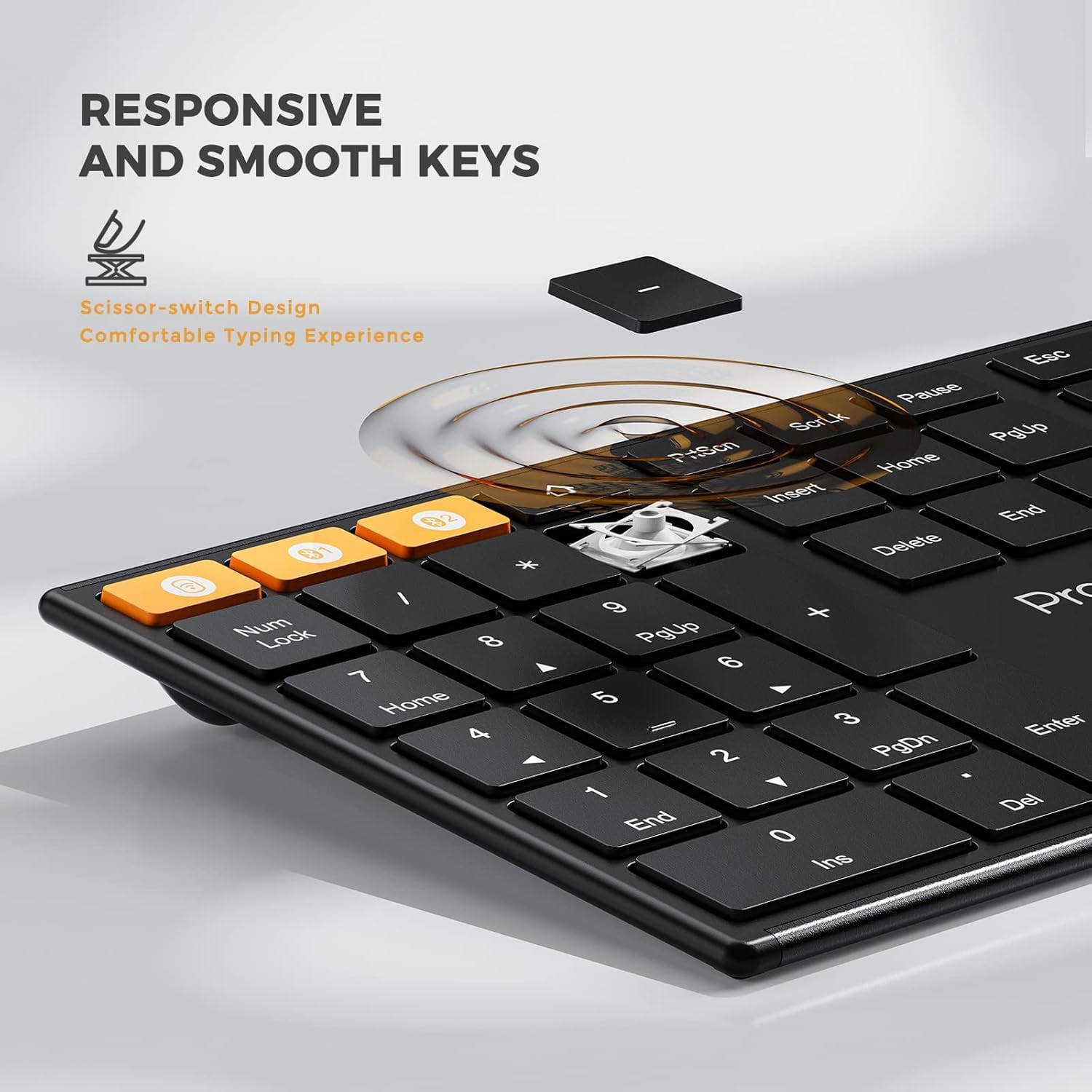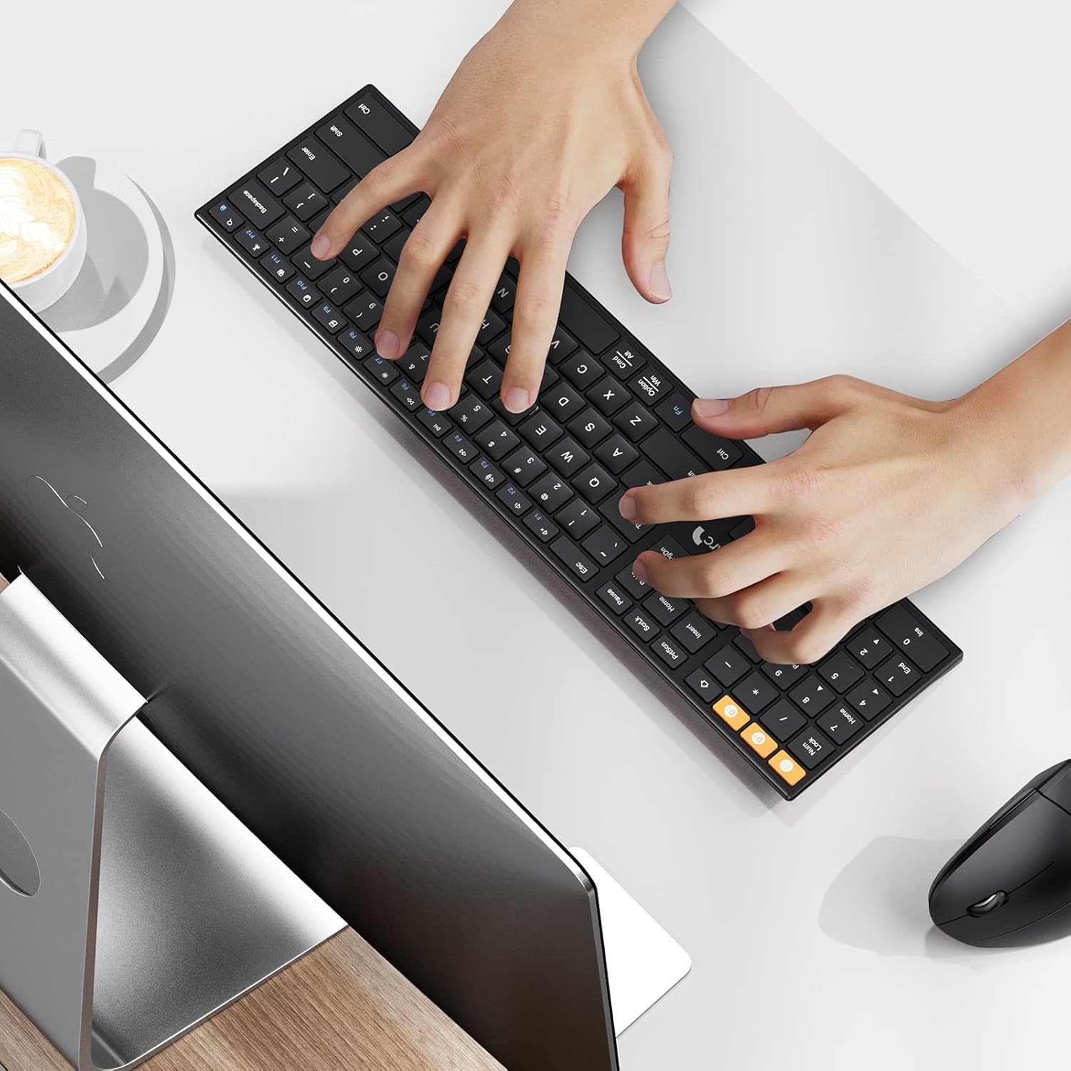 Multi-Device Wireless Keyboard: Easy to connect to 3 devices at the same time via USB or Bluetooth. Switch between them at the touch of an easy-switch button