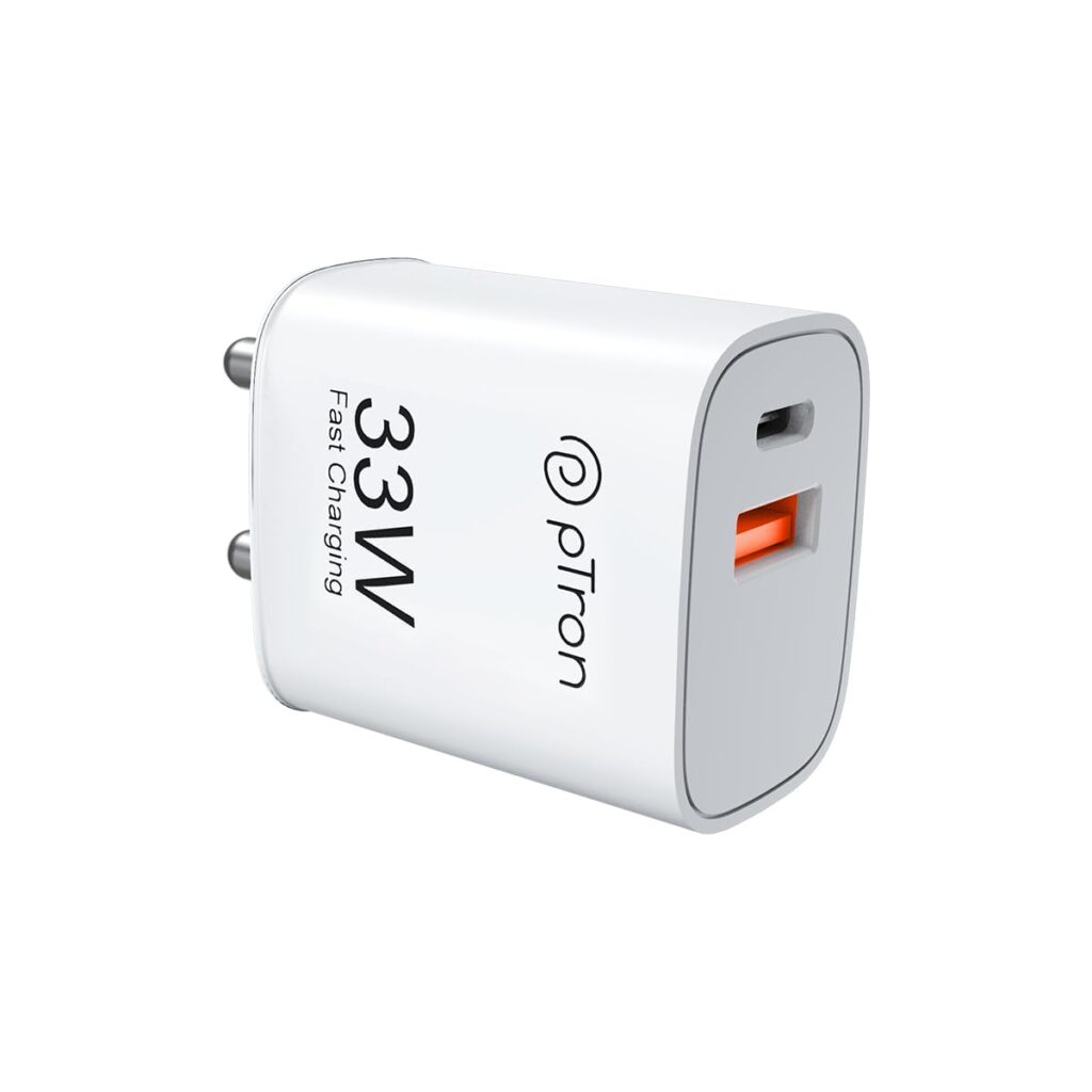 pTron 33W Dual Port Gan USB Type A Charger, Compatible with Samsung Superfast, Mi Soniccharge, Motorola Turbo Charger & MacBook Air, Volta Fc21 (White)