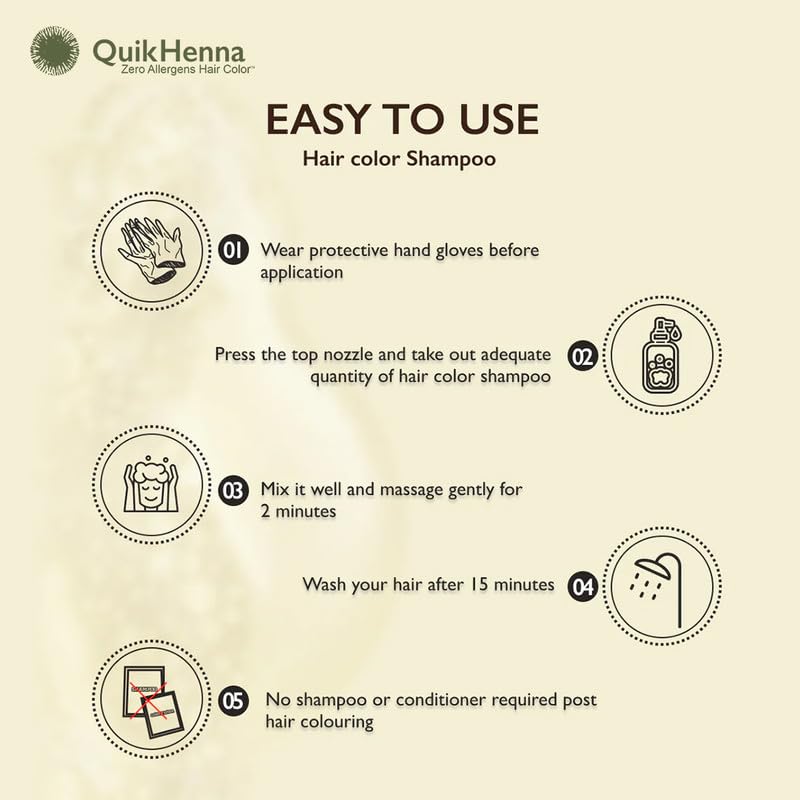 Salon-like Results with Long-Lasting Color: QuikHenna Hair Colour shampoo provides professional hair color results with salon-like results at home. Its shine-enhancing and conditioning hair color formula delivers a glossy finish and radiant color, ensuring color protection and a beautiful, healthy hair color.