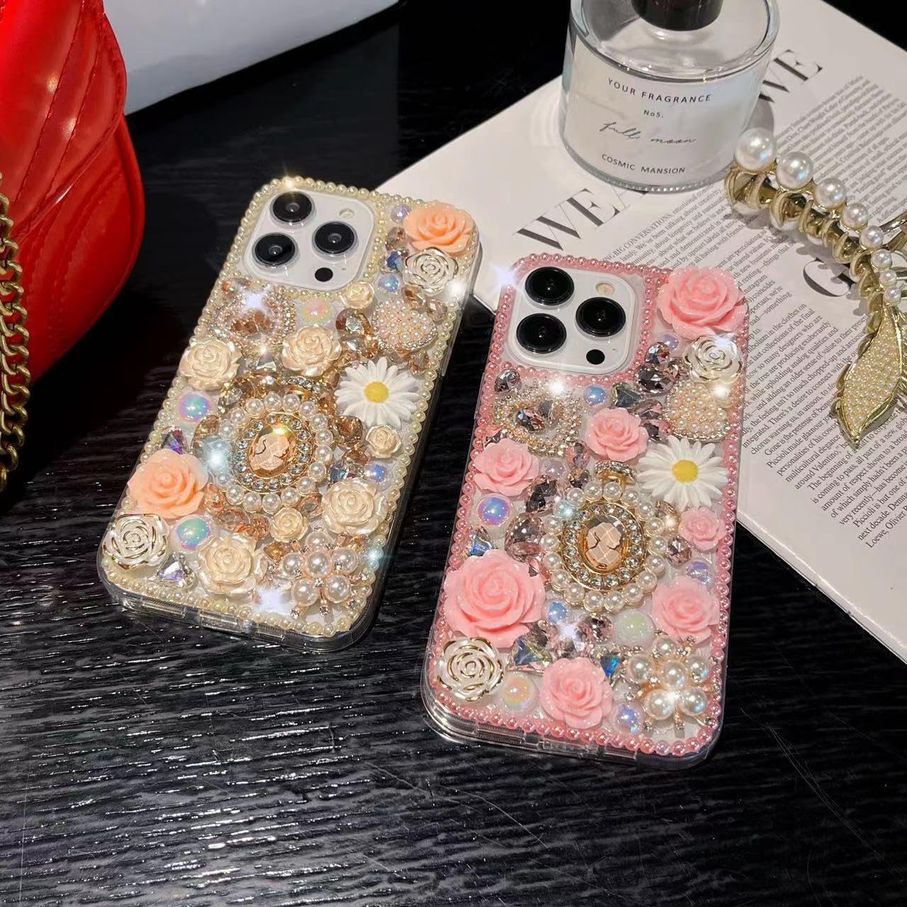 ❆【3D Diamond & Rose】: This gorgeous case has impressed 3D glitter clear diamond rose flower floral design, makes your iPhone 15 Pro Max attractive, wherever you go you will get a lot of compliments with this case.
