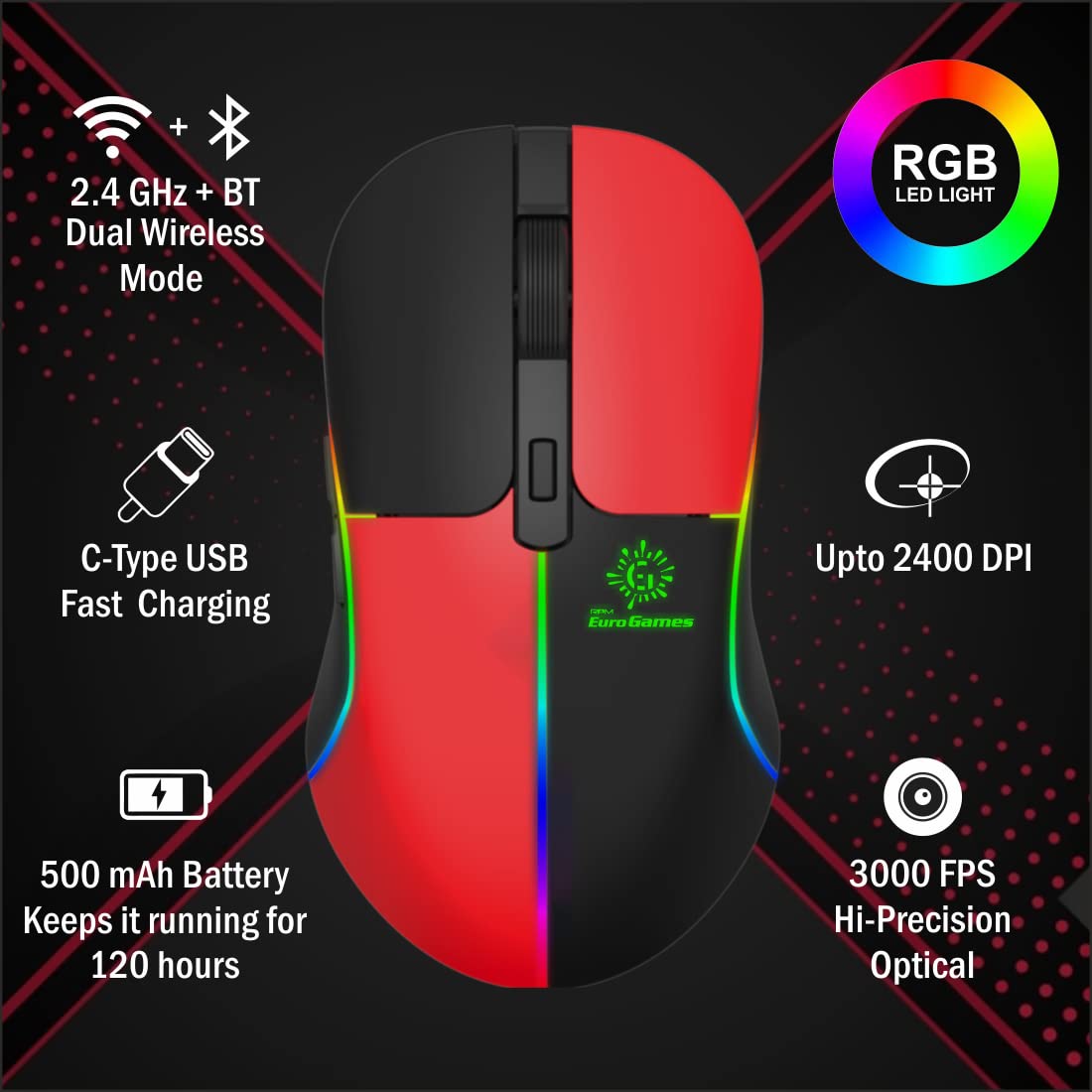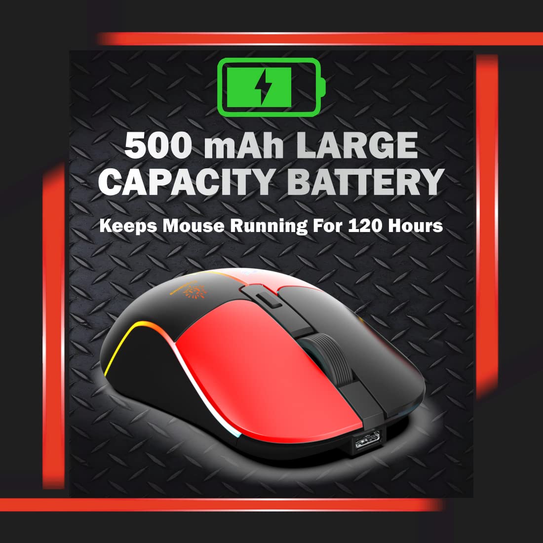 【Rechargeable Battery】- RPM Euro Games wireless mouse has an in-built Rechargeable 500 mAh battery which keeps you in the game for 120 Hours with 1 single charge. Adopt intelligent energy-saving design, standby time is long with auto sleep mode. The mouse can be used while charging.