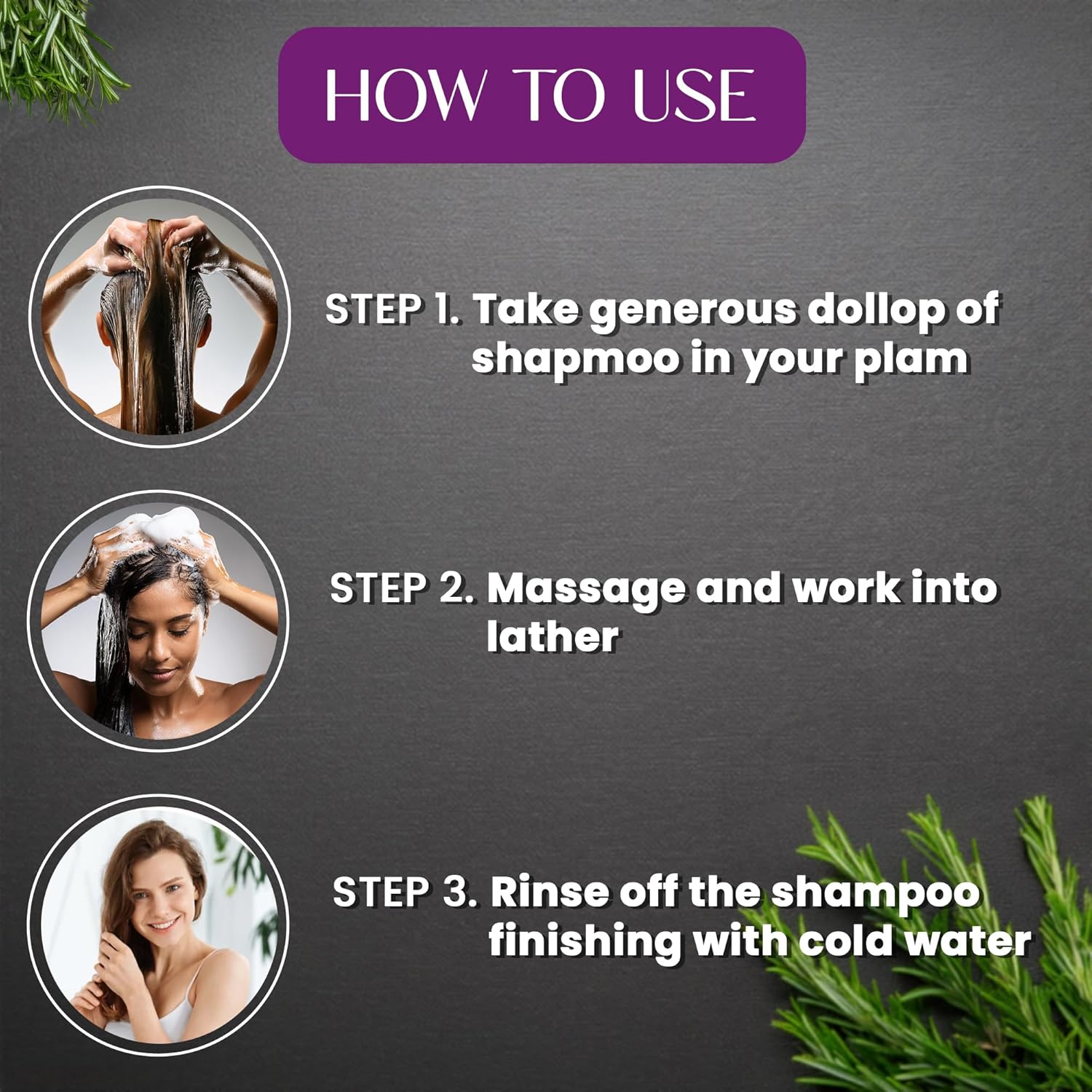 ✅How to use : Apply shampoo to wet hair. Massage well into hair and scalp using fingertips. Rinse thoroughly.