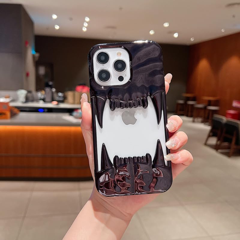 Premium Designer Look: Features a striking 3D fangs design with a high-gloss metallic chrome finish, adding bold style to your phone.