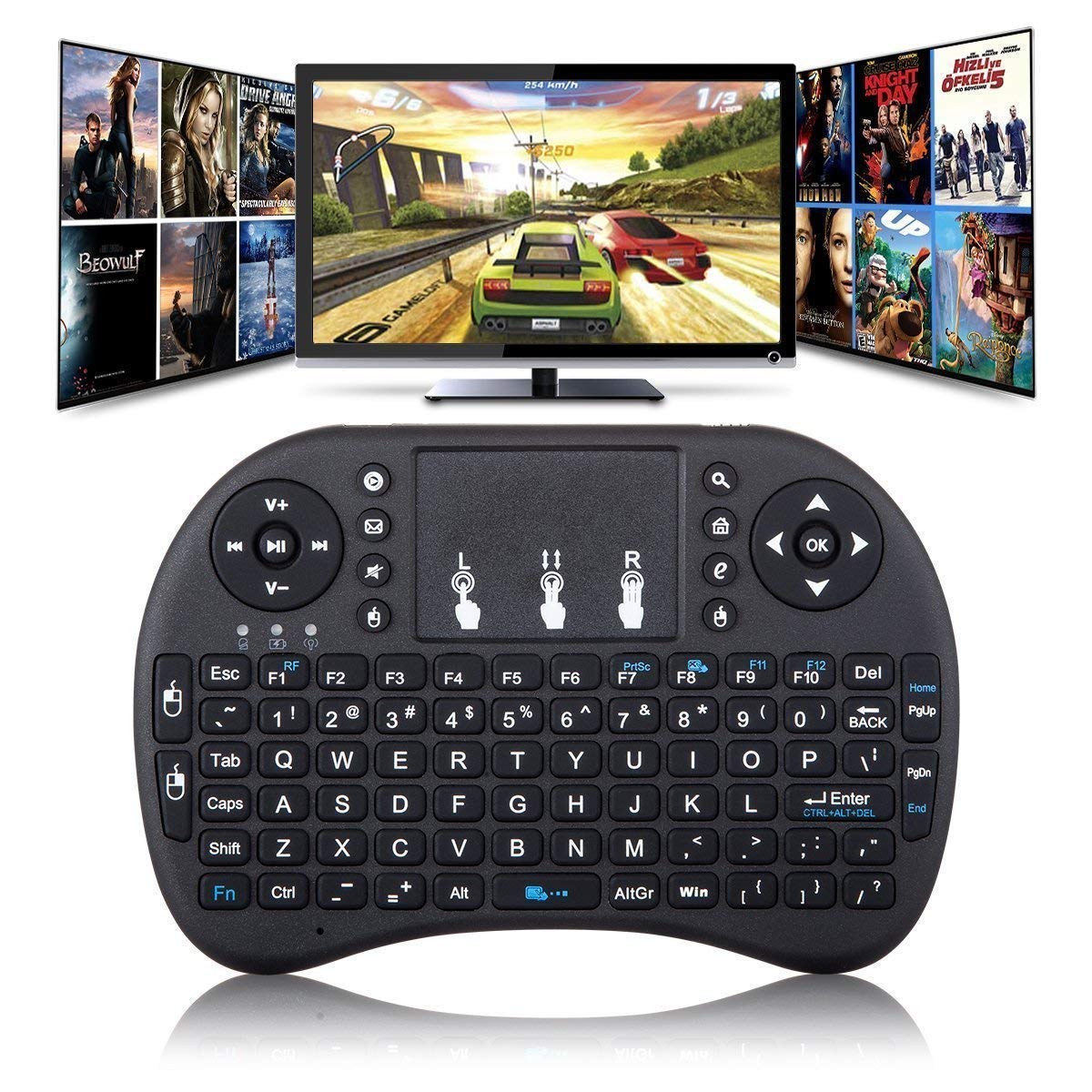 MULTIFUNCTION – 2.4GHz Mini Wireless QWERTY keyboard, Touchpad combo, multimedia control keys and PC gaming control keys with USB interface adapter.