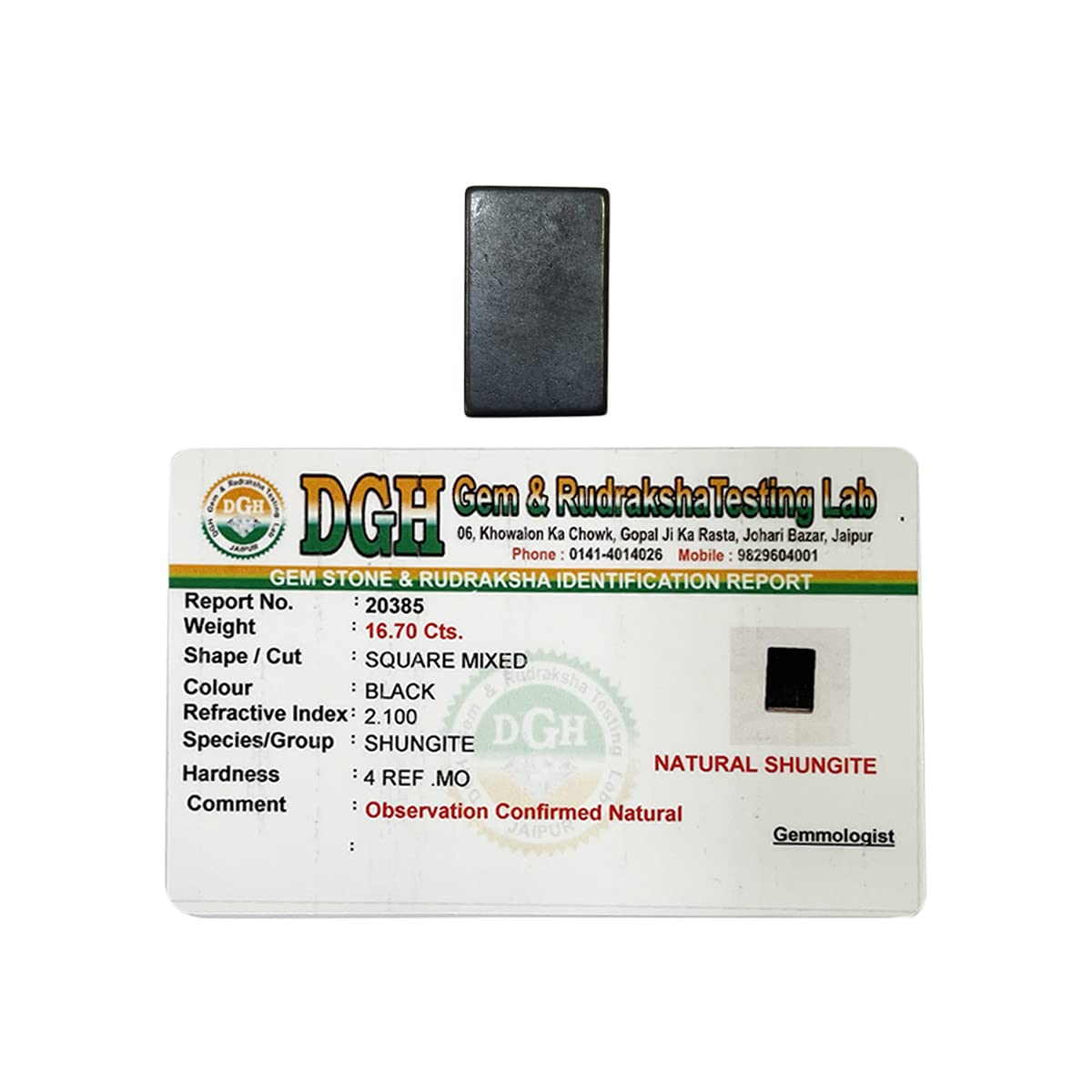 Protects against harmful health effects of electromagnetic radiation emitting from cell phones. The chip is clinically tested & certified by SHRIFAL GEMOLOGICAL LABORATORY SERVICES.It is GOVT certified.