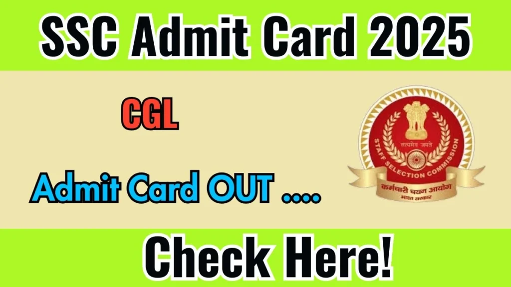 SSC CGL Admit Card 2025 is Out! On 09-09-2025 Staff Selection Commission has officially released the SSC CGL Admit Card 2025. Candidates who have applied for the CGL Exam can now download their admit card from the official website ssc.gov.in.