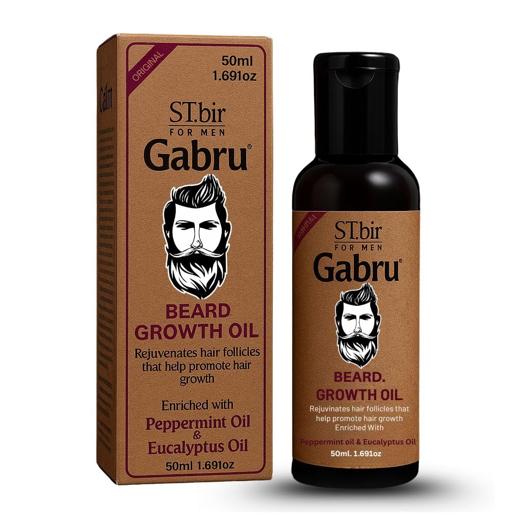 Gabru Beard Growth Oil with Peppermint & Eucalyptus is specially crafted to give your beard the care it deserves. Infused with powerful natural ingredients, this 50ML beard oil deeply penetrates hair follicles to stimulate beard growth, reduce patchiness, and strengthen hair from the roots. The cooling effect of peppermint oil soothes irritated skin, while eucalyptus oil helps cleanse pores and reduce beard dandruff. Lightweight and non-greasy, this beard oil is perfect for daily use—keeping your beard fresh, soft, and naturally groomed with a bold, minty fragrance. Designed for Indian men who want a bold, stylish, and well-maintained beard.
