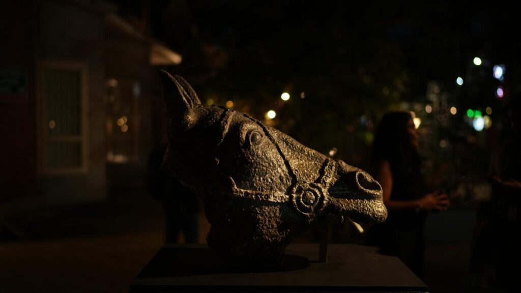 Known for his explorations of animal forms across media, Magesh returned to the motif of the horse, a recurring symbol in his practice. “The image of a broken warrior horse in a way symbolises the fall of power and, at the same time, the rise of suppressed voices — the making way of a new beginning,” he explained.