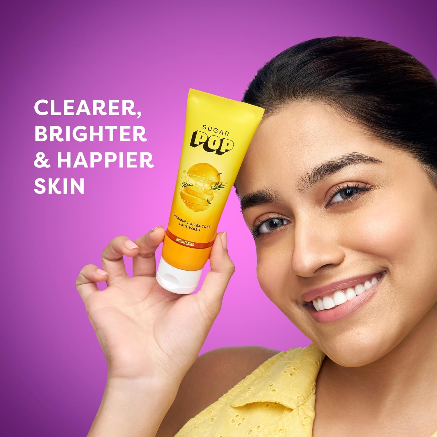 SUGAR POP Vitamin C & Tea Tree Facewash | Brightening | Oil-Control | Anti-Acne Cleanser | For All Skin Types | 40 ml