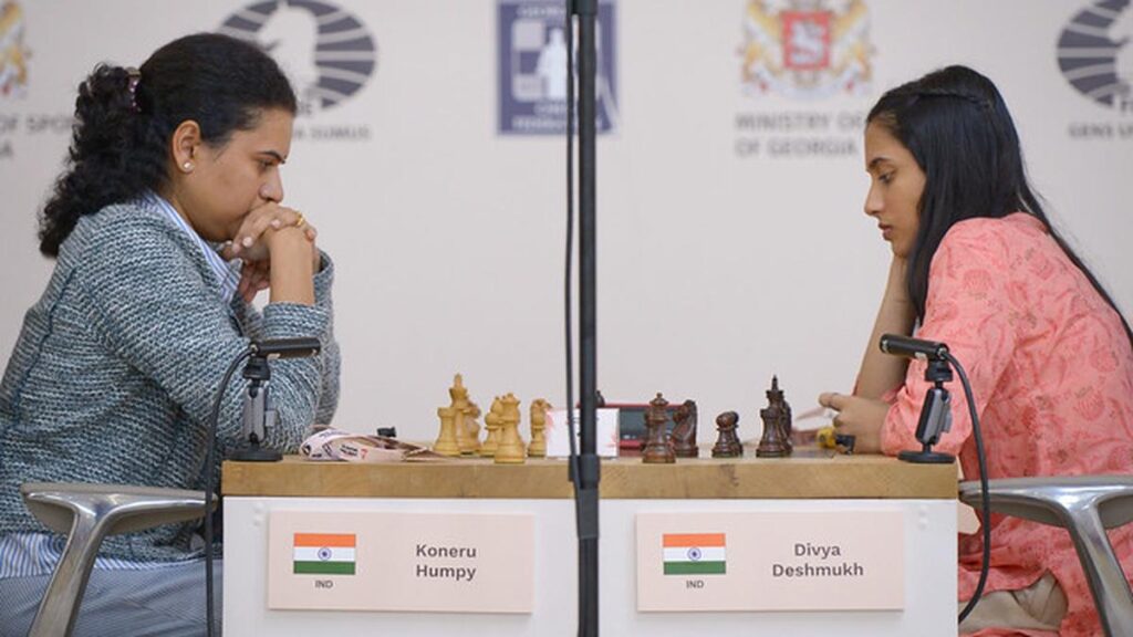The second game, in which Divya was playing with black, was wilder, with both players making significant mistakes. On the 42nd move, an unwise pawn-push down the centre by Humpy had given the younger woman a clear advantage.