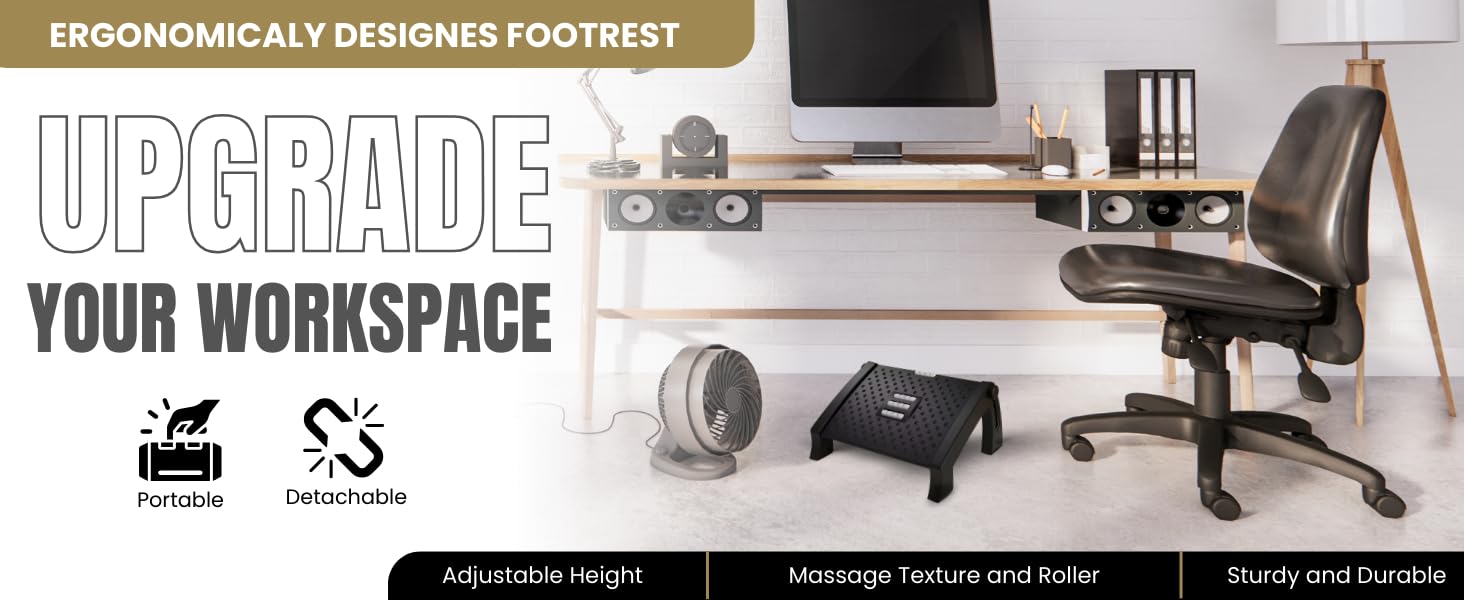 ERGONOMIC DESIGN: Evenly disperse pressure, Relax muscles, Raise your feet, Keep your Thighs and legs vertical and relieve sore feet. High quality footrest is engineered with the perfect firmness to provide you optimal support.