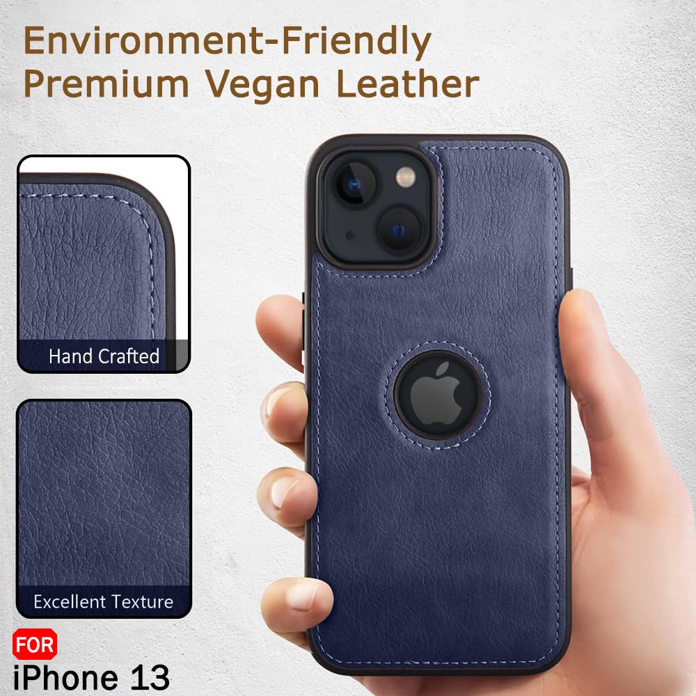 TheGiftKart Genuine Leather Finish iPhone 13 Back Cover Case | Shockproof Design | Raised Edges for Camera & Screen Protection | Stunning Minimalist Design Back Case Cover for iPhone 13 (Blue)