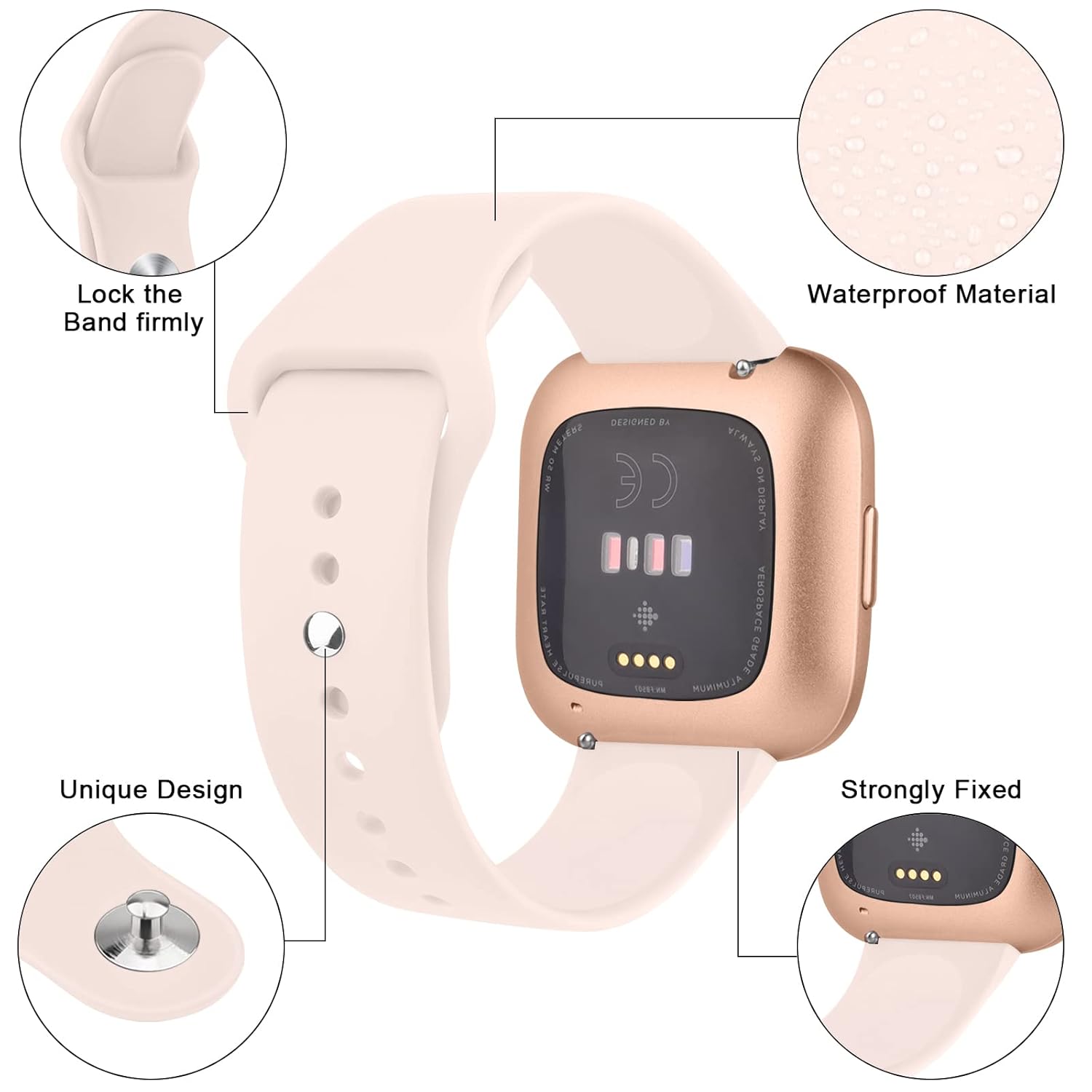 Slide the built-in quick-release pins and lock into the notch of the smart watch precisely.
