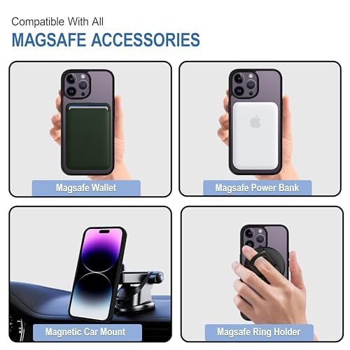 Wireless Charging: Built-in magnets ensure precise alignment for seamless wireless charging. This accessory offers a hassle-free, clutter-free charging experience with a reliable and stable connection every timeShowcase Original Phone: A transparent Mag-Safe mobile cover that highlights your phone’s original color and design while ensuring dependable protection. Featuring a sleek, slim profile and precise cutouts for buttons, ports, and the cameraVersatile Compatibility: This Mag-Safe case turns your phone into a multifunctional accessory hub, seamlessly compatible with various Mag-Safe accessories, including chargers, wallets, rings, car holders, and kickstands Premium Case cover for Apple iphone 14 pro max
