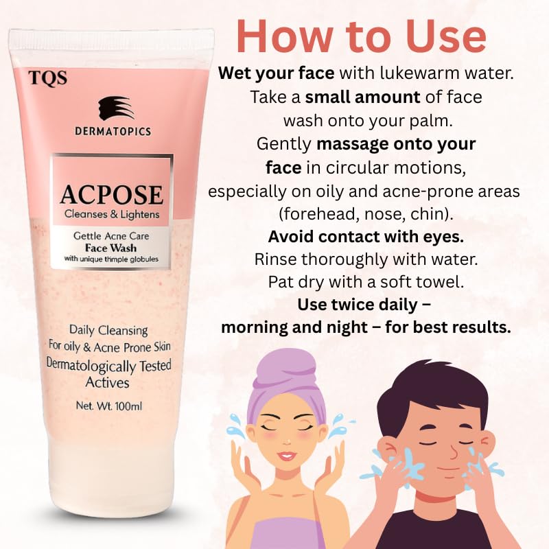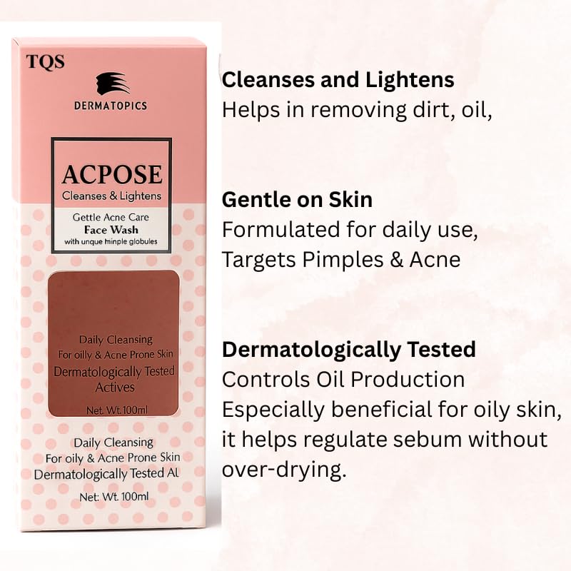 Say goodbye to acne and oily skin with **TQS ACPose Face Wash** – a dermatologist-tested gentle cleanser specially formulated for oily and acne-prone skin. Powered with **unique thimple globules** and **active ingredients**, this face wash helps fight pimples, reduce blemishes, and control excess sebum while maintaining the natural moisture balance. Perfect for both men and women, this face wash provides **daily deep cleansing** without irritating or drying the skin. Whether you’re dealing with breakouts, clogged pores, or oily shine, ACPose has you covered. Add it to your skincare routine and enjoy visibly clearer, smoother skin