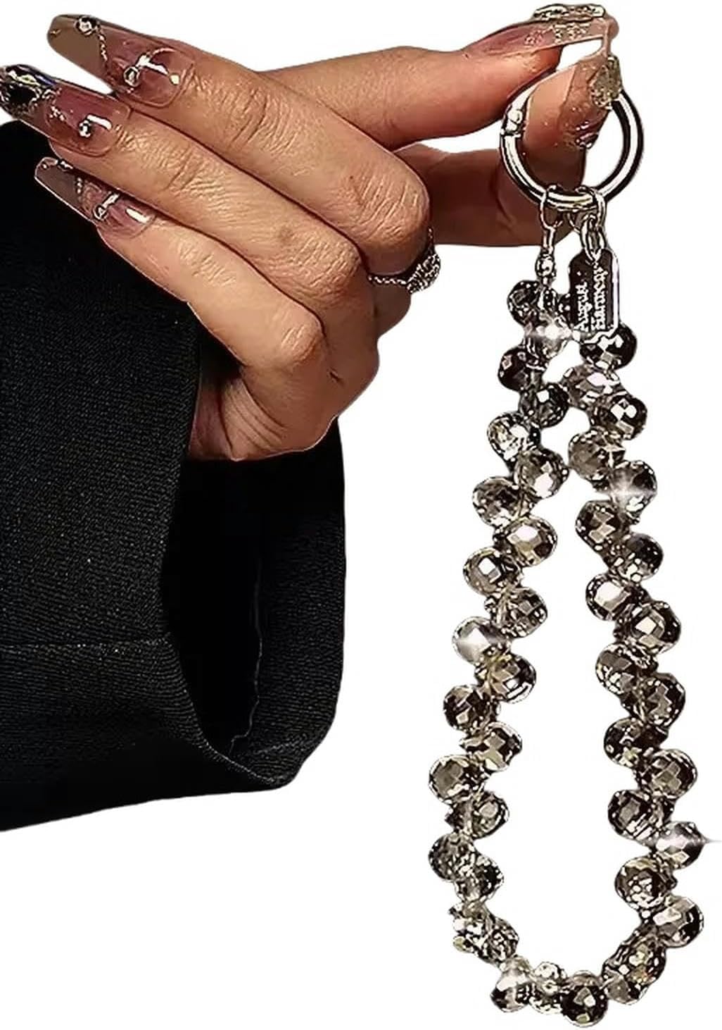 Crystal Phone Wrist Strap Phone Charm Chain Keychain Beaded Cellphone Lanyard with Tether Tab Hands-Free Wristlet Bracelet Wrist Grip Strap for Women