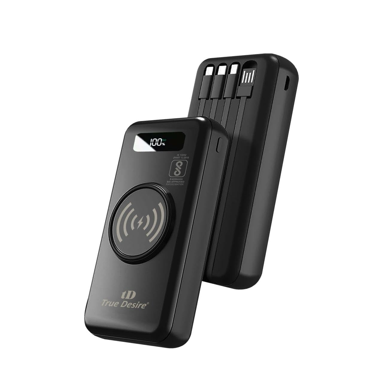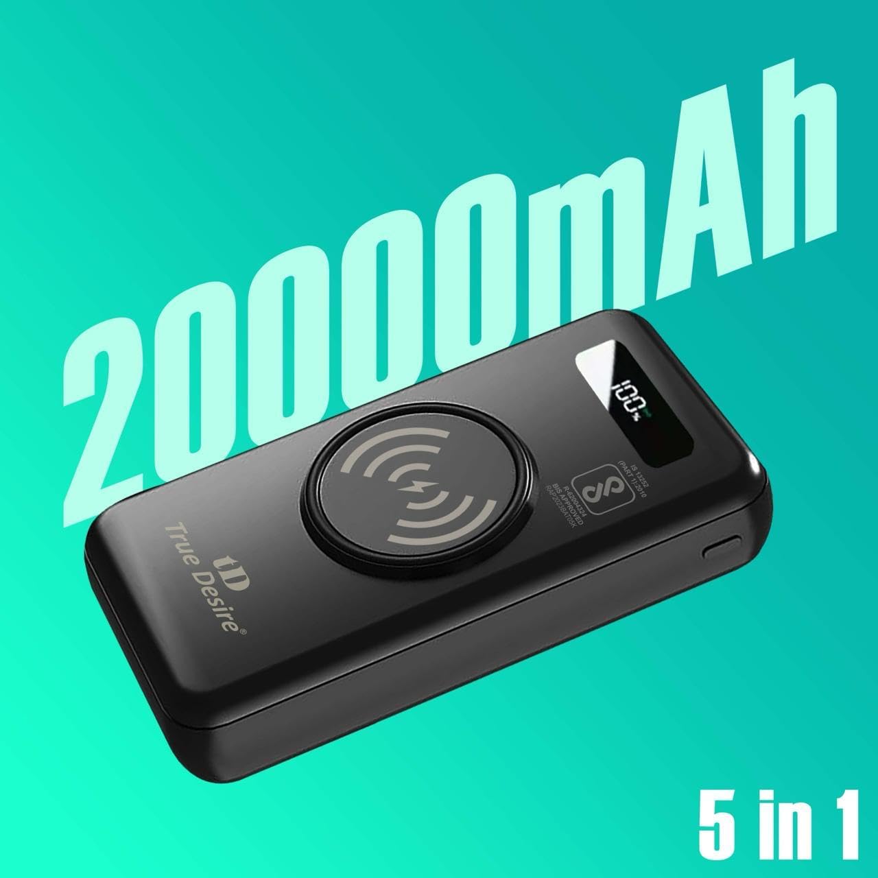 Introducing the TD True Desire 20000mAh Polymer Digital Display Power Bank, designed to keep your devices charged and ready wherever you go. This power bank features a high-capacity 20000mAh battery and supports multiple charging options, including 5W, 7.5W, 10W, and up to 15W wireless charging for Qi-enabled devices. Equipped with a robust 20W Type-C and Lightning input/output, it allows for simultaneous charging of up to four devices, ensuring a seamless and efficient charging experience. The ultra-thin magnetic battery pack securely attaches to your device, providing 15W rapid wireless charging and allowing for convenient use on the go.