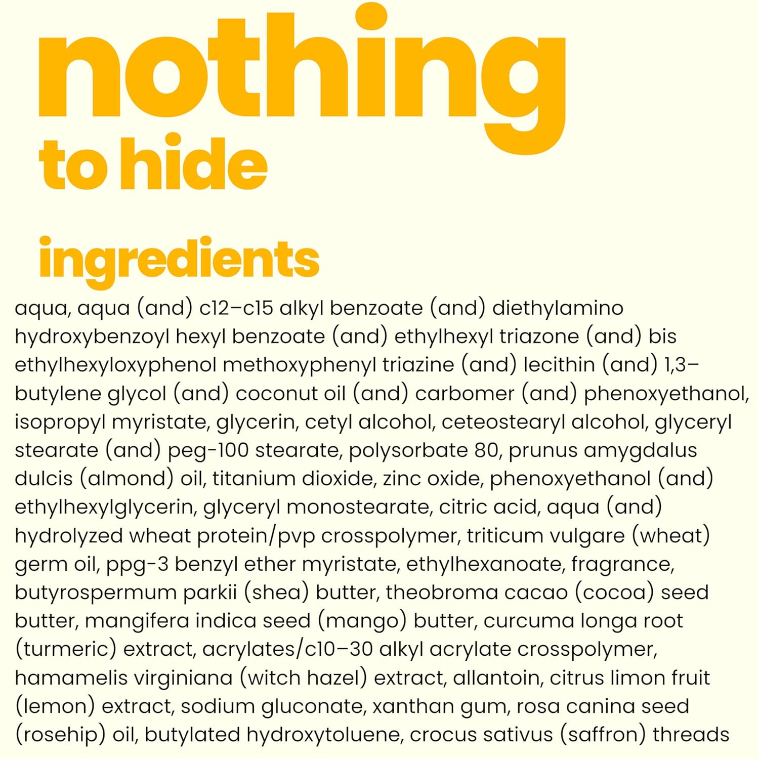 NATURAL INGREDIENTS: This face cream and sunscreen is powered by natural ingredients. Saffron Oil brightens and evens out skin tone, Squalane deeply hydrates without clogging pores, and Licorice Extract reduces the appearance of dark spots and helps maintain even skin tone. The Natural UV Filter effectively protects sensitive skin from the sun’s harsh rays.