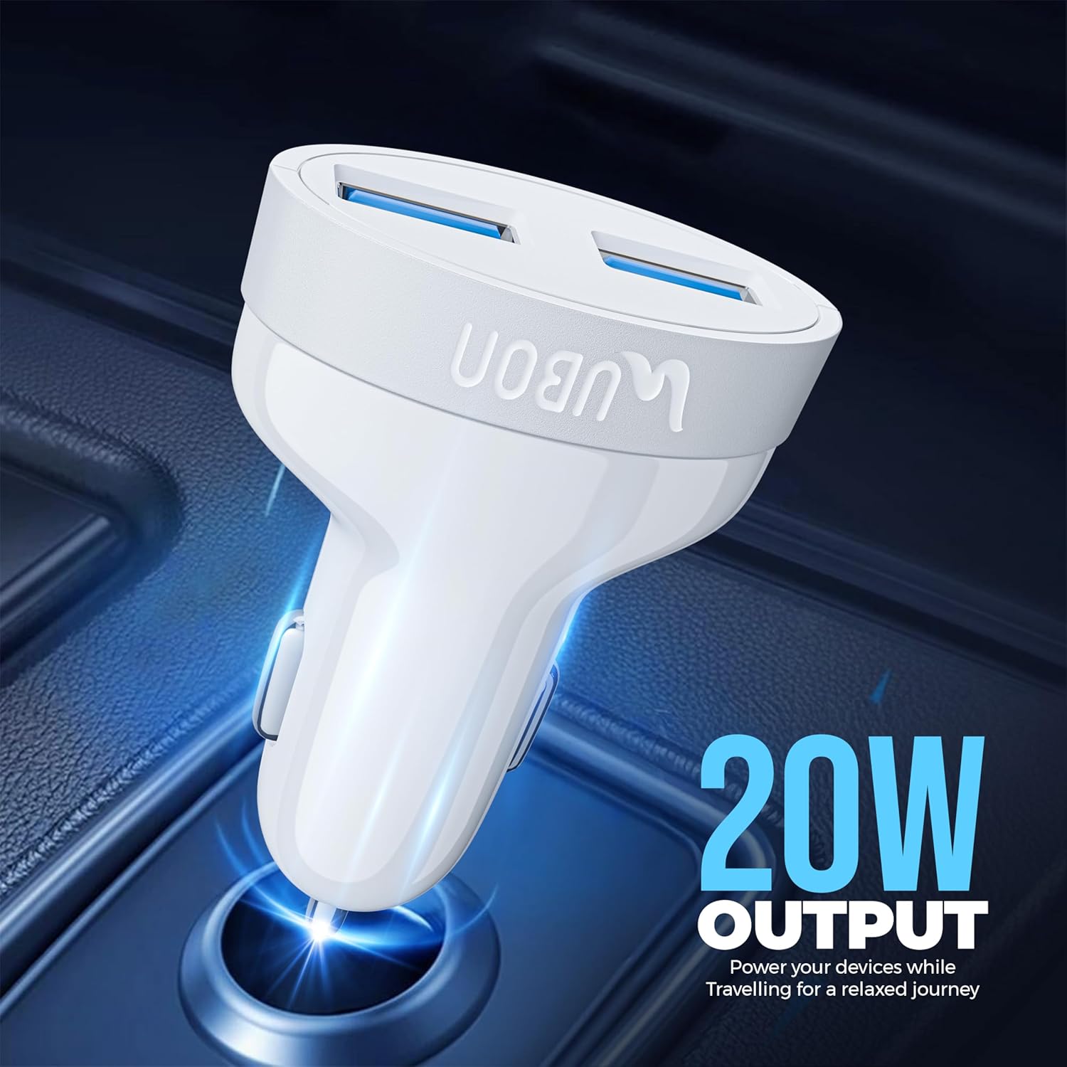 20W DUAL USB FAST CHARGING – Charge two devices simultaneously with a powerful 20W total output for quick and efficient charging on the go.