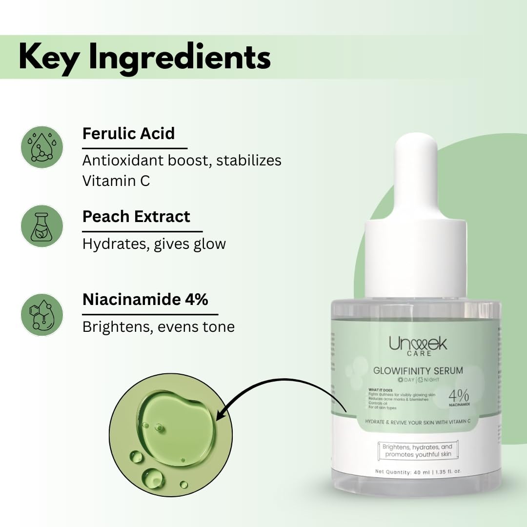 With Niacinamide, Glowfinity helps reduce redness, minimize pores, and control excess oil, leaving your skin balanced, smooth, and refreshed.