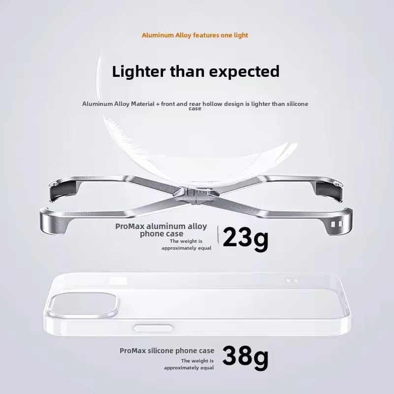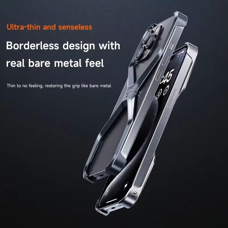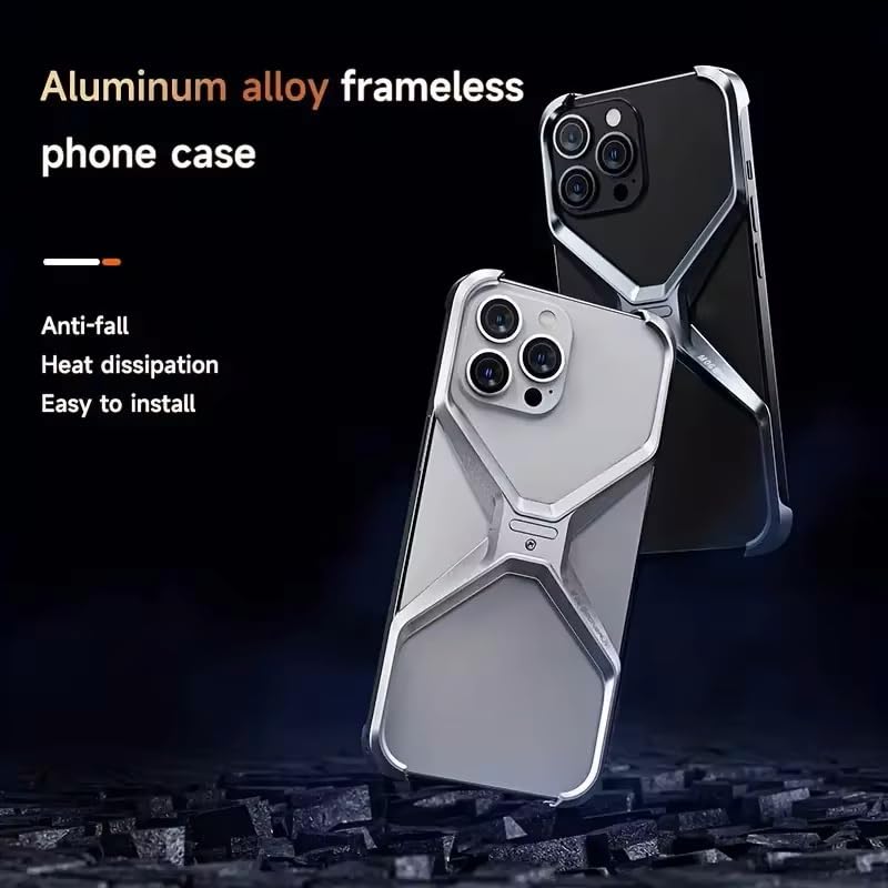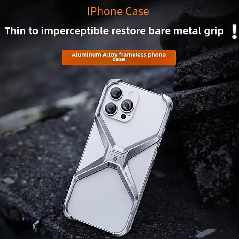 UNIQSHINE Frameless X Shaped Case for iPhone 14 Pro Max | Luxury Aluminum Armor Case | Super Slim Premium Metal - Silver