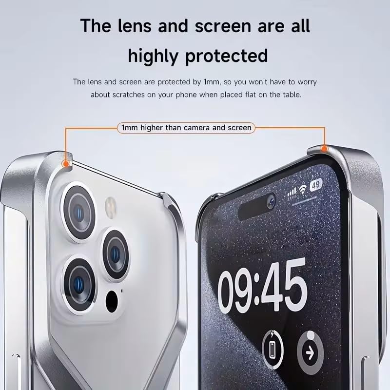 UNIQSHINE Frameless X Shaped Case for iPhone 14 Pro Max | Luxury Aluminum Armor Case | Super Slim Premium Metal – Silver