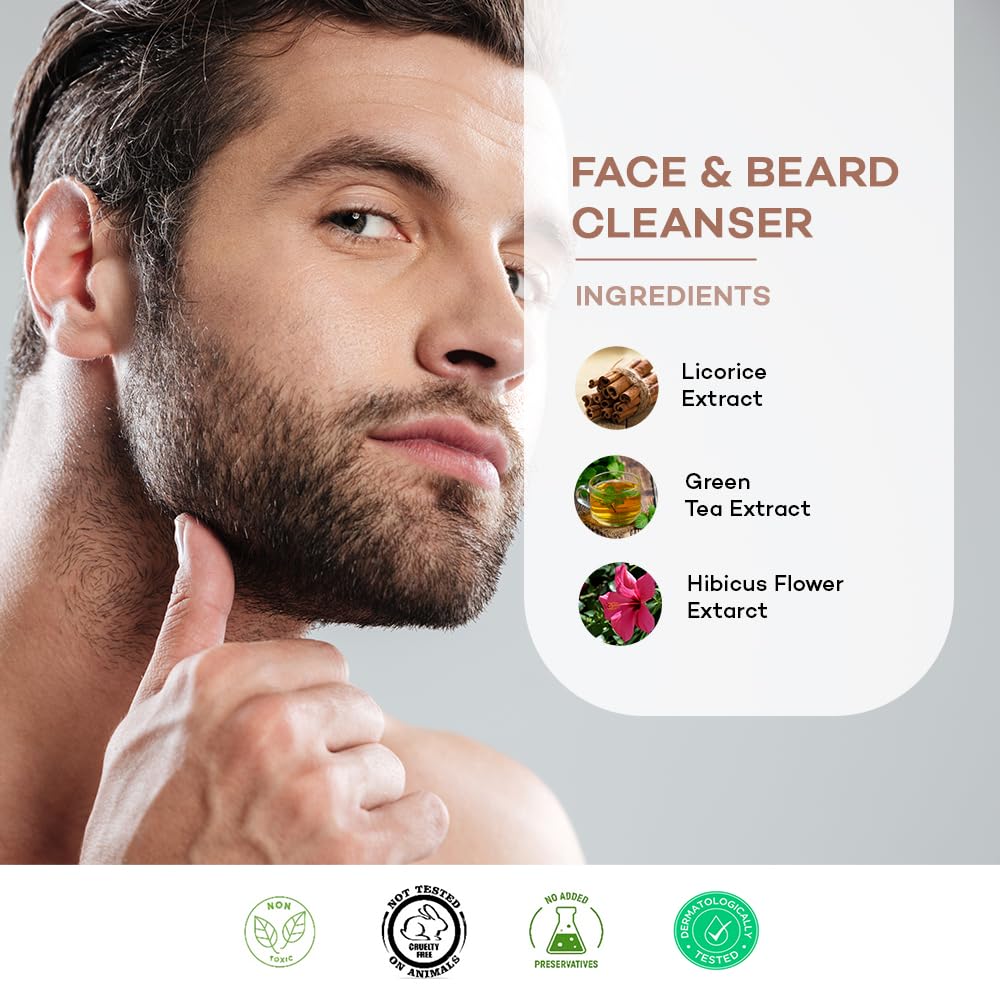Deep Cleansing Action – Specially formulated to remove dirt, oil, and daily impurities from both face and beard, keeping skin fresh and clean.