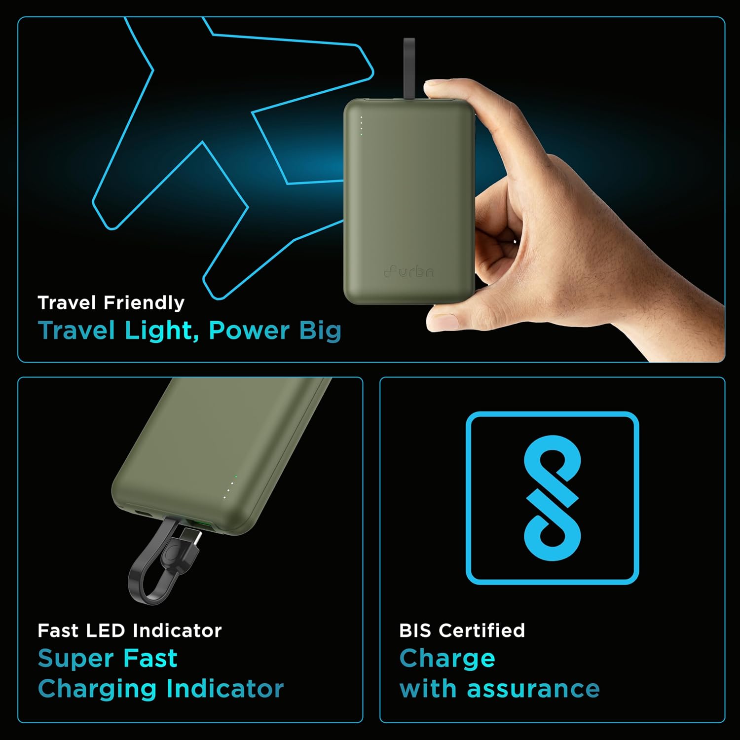 Introducing the URBN 10000 mAh Maglink Power Bank, the slimmest and most efficient solution for fast, reliable power on the go. Designed to seamlessly attach to your devices with strong magnetic hold, this portable powerhouse combines sleek aesthetics with top-tier performance. It features a built-in USB-C cable for hassle-free charging and a powerful 22.5W fast charging capability, making it the perfect companion for your USB-C devices like smartphones, tablets, and more. Key Features: 10000 mAh High-Capacity Battery: Power through your day with a reliable 10000 mAh capacity that delivers multiple charges to your devices, ensuring you stay connected, no matter where life takes you. 22.5W Fast Charging: Charge your devices at lightning-fast speeds with the 22.5W fast-charging feature, reducing downtime and allowing you to get back to what matters most. Built-in USB-C Cable: Say goodbye to messy cords and forgotten cables. The built-in USB-C cable provides convenience and reduces clutter, making this power bank perfect for those always on the move. Magnetic Design with Strong Hold: The Maglink power bank securely attaches to your device via magnets, ensuring a stable connection without the worry of disconnections while charging. Slimmest Design: At just a fraction of the size of traditional power banks, the URBN Maglink is designed to be ultra-slim and lightweight, easily fitting in your pocket or bag for ultimate portability. Pass-Through Charging: Charge your device and power bank simultaneously with pass-through charging, eliminating the wait time and making it more efficient to stay powered up. 12 Months Replacement Warranty: Enjoy peace of mind with a 12-month replacement warranty, ensuring quality and reliability for your investment.