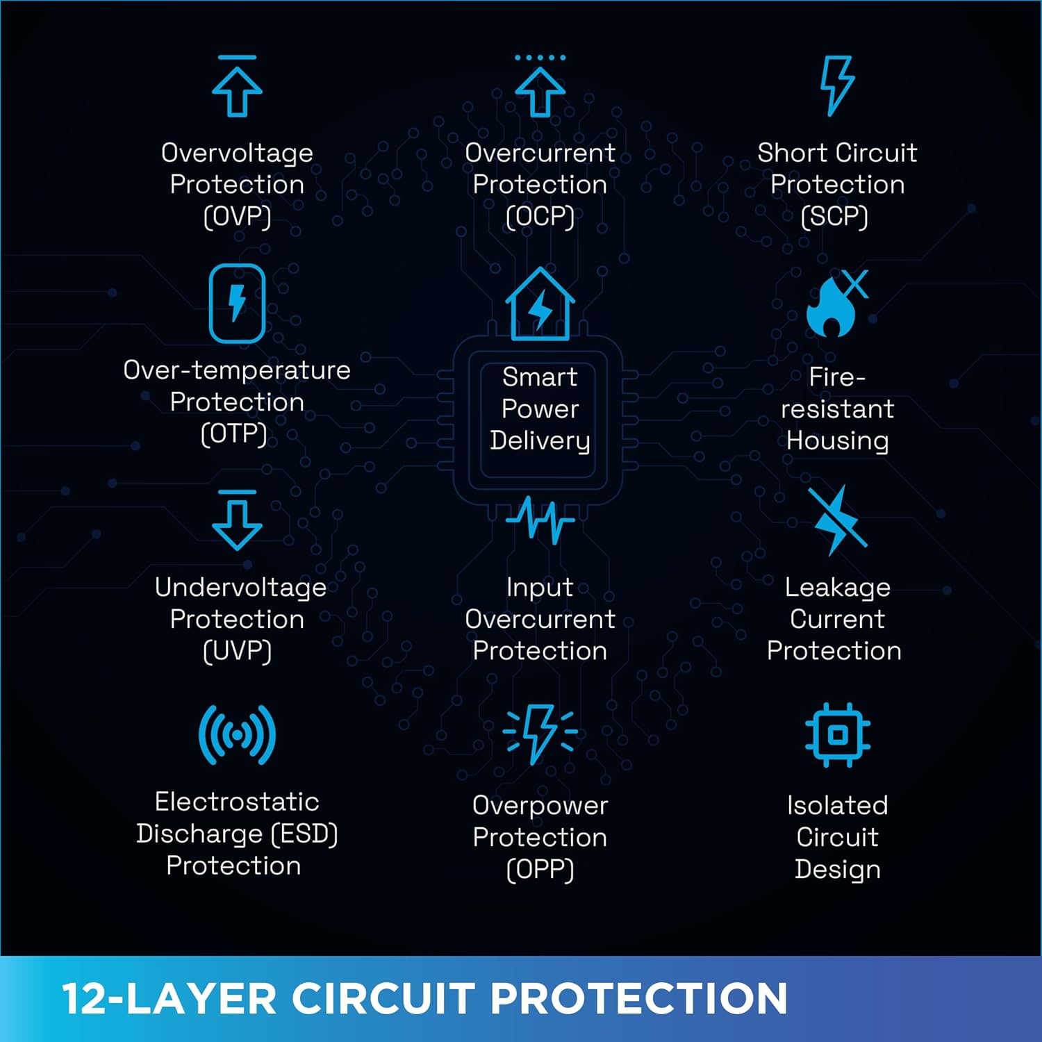 🔒 Multi-Layer Safety Protection: Built-in protection from overheating, overcharging, voltage surges, and short circuits ensures safe charging every time.