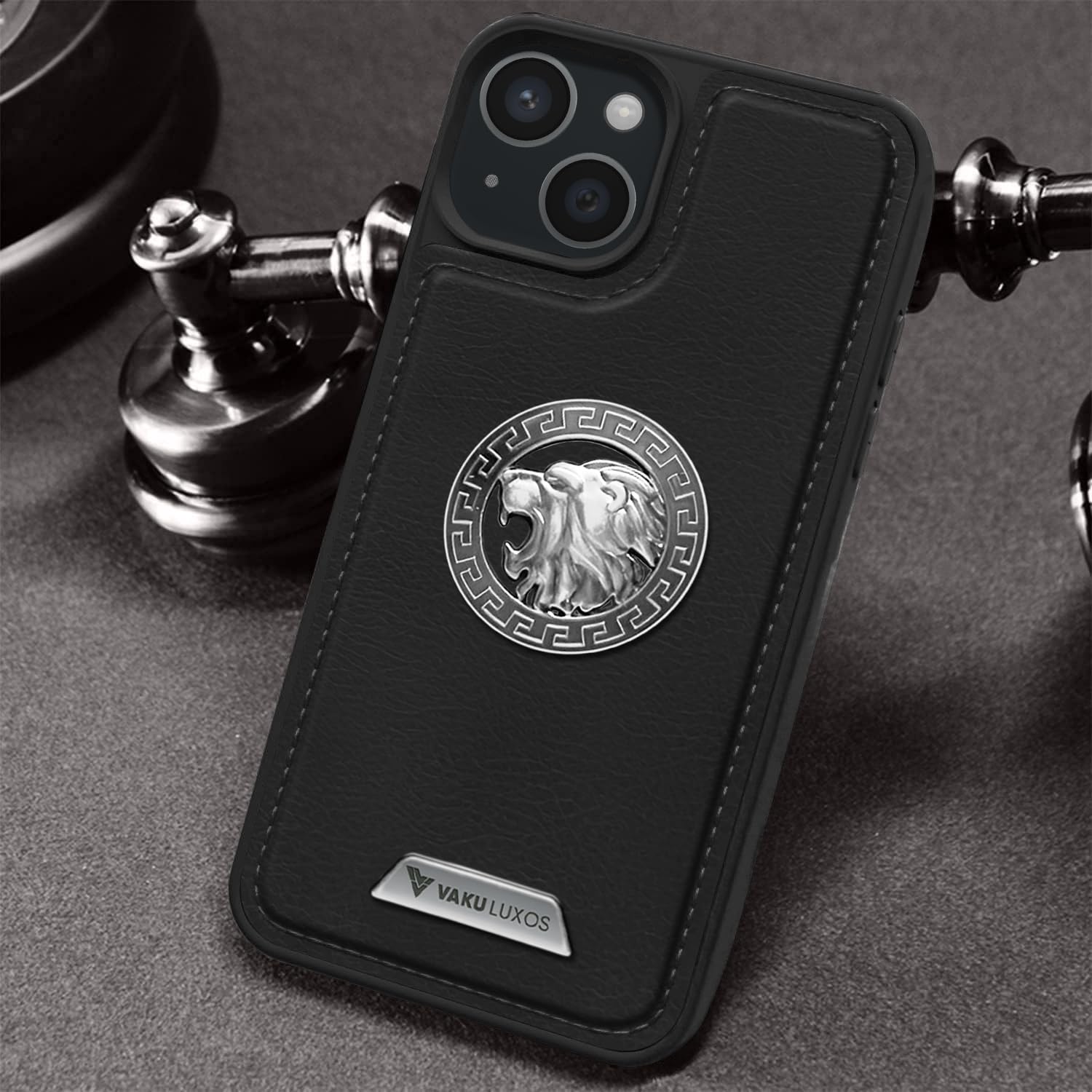 【Premium Regal Design】 Elevate your iPhone 15 with the Regal Shield case, crafted from premium leather-inspired material and featuring a bold, metallic lion-engraved emblem. This is not just a cover. it’s a statement of style and elegance.