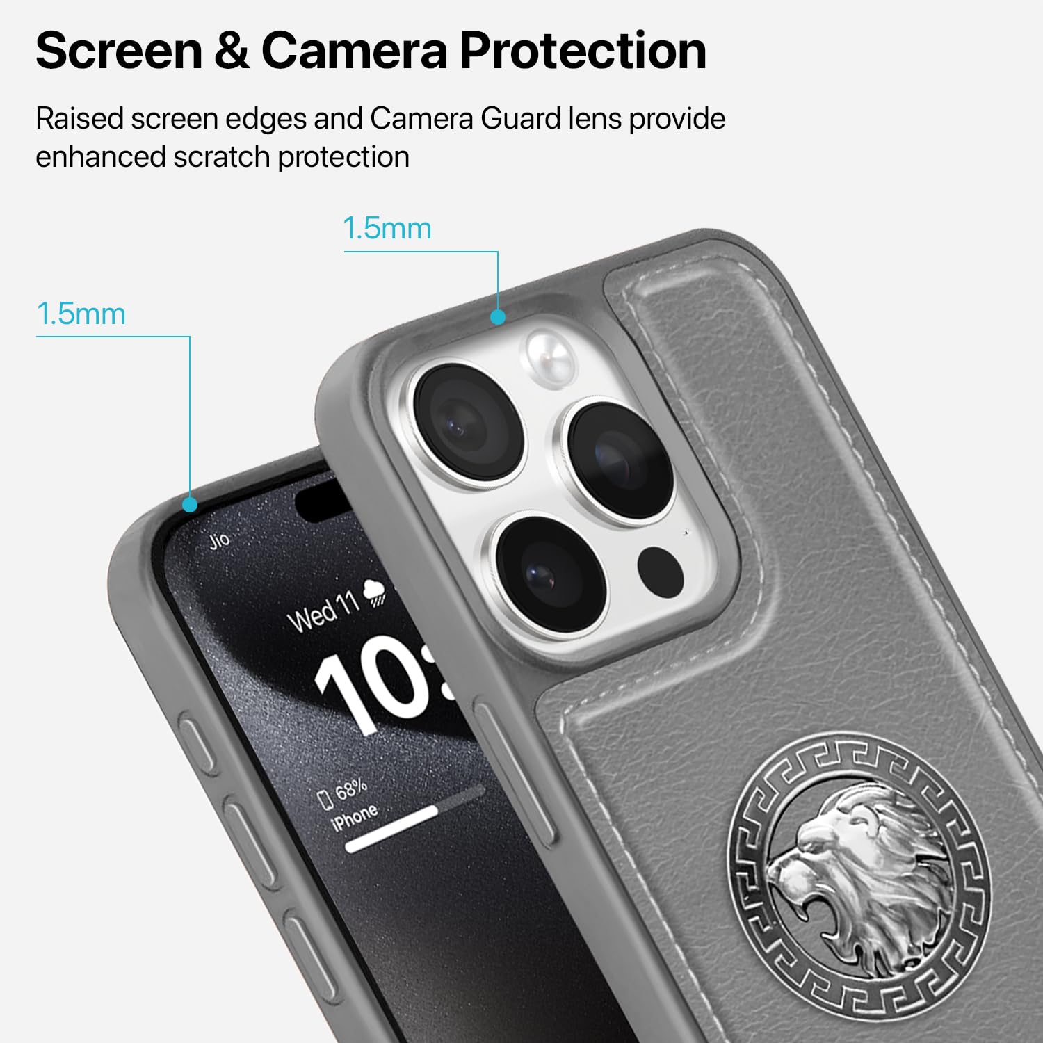 【Premium Regal Design】 Elevate your iPhone 15 Pro Max with the Regal Shield case, crafted from premium leather-inspired material and featuring a bold, metallic lion-engraved emblem. This is not just a cover. it’s a statement of style and elegance.