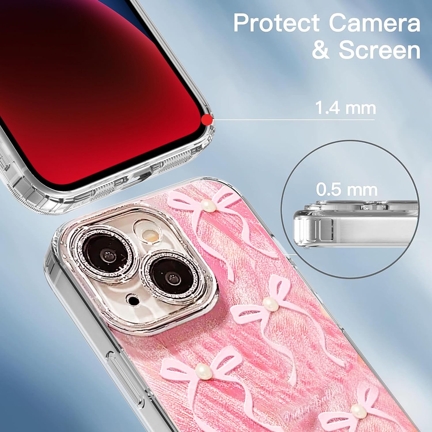 🌺【Stylish Bling Design】 – The sparkling diamond-like colorful vintage Bling Glitter Diamond Cute Bowknot design makes your phone so pretty. The cute wavy border design makes your phone fashion and more eye-catching.