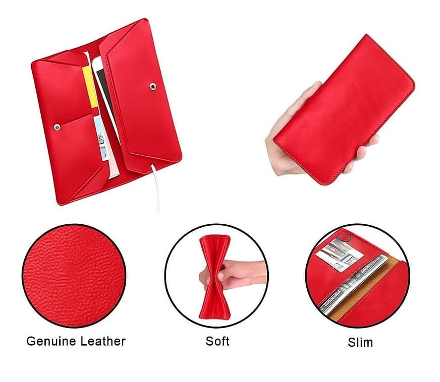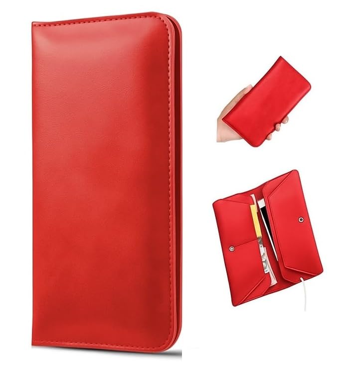 * The Red Premium Leather Pouch Case, New Fashion Luxury Wallet Pouch | Dual Layer Dual Phone Storage And Multi Card Slot Wallet Case | It Functions Just Like a Wallet, Business And Travel Both Suitable.